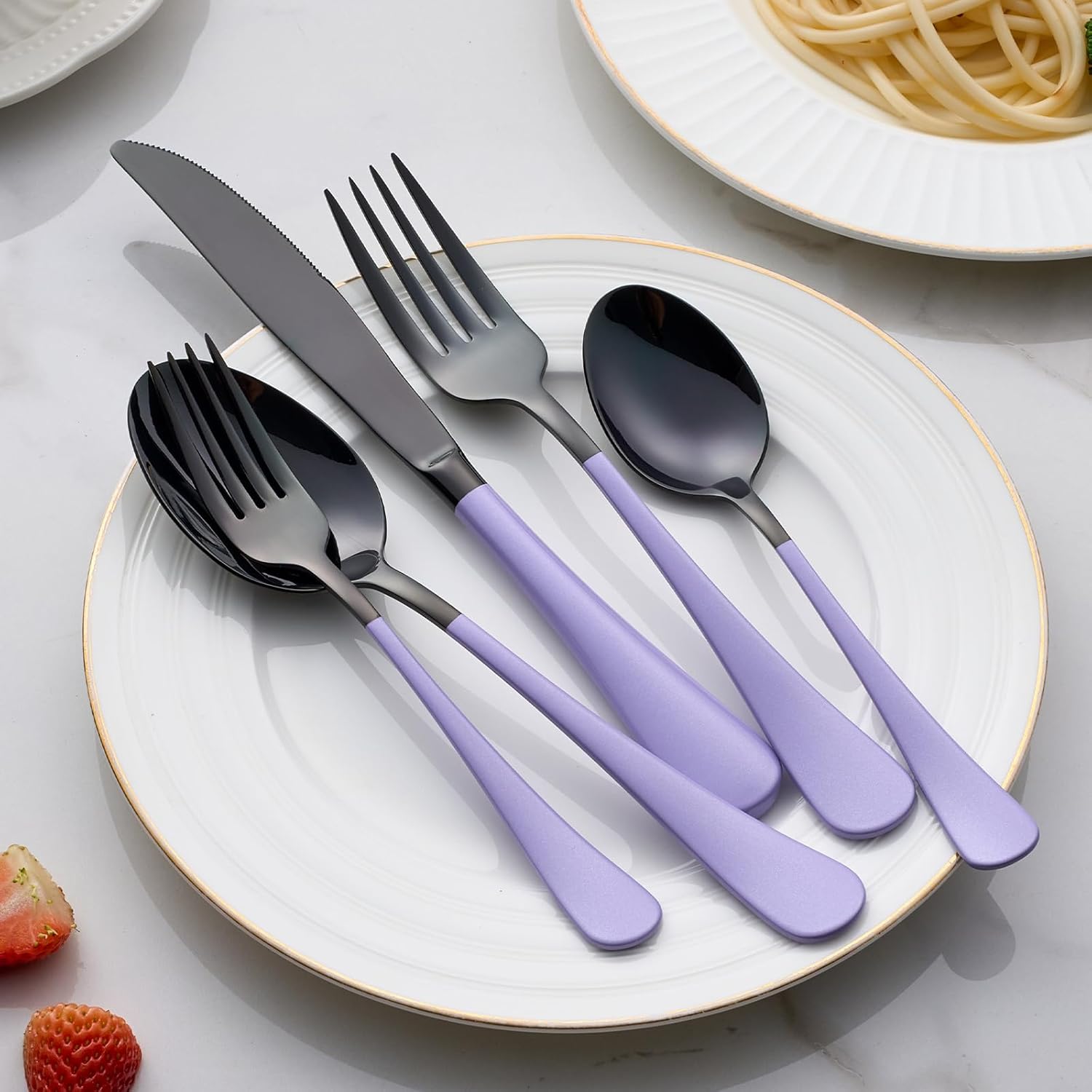• 【Vibrant Colors】: Elevate your dining experience with this 20-piece stainless steel flatware set featuring eye-catching colored handles.