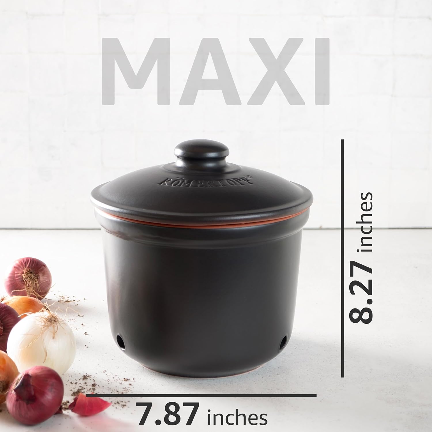 Romertopf Freshness Storage Potato Onion Garlic Clay Pot Set of 3 with Lids - Black