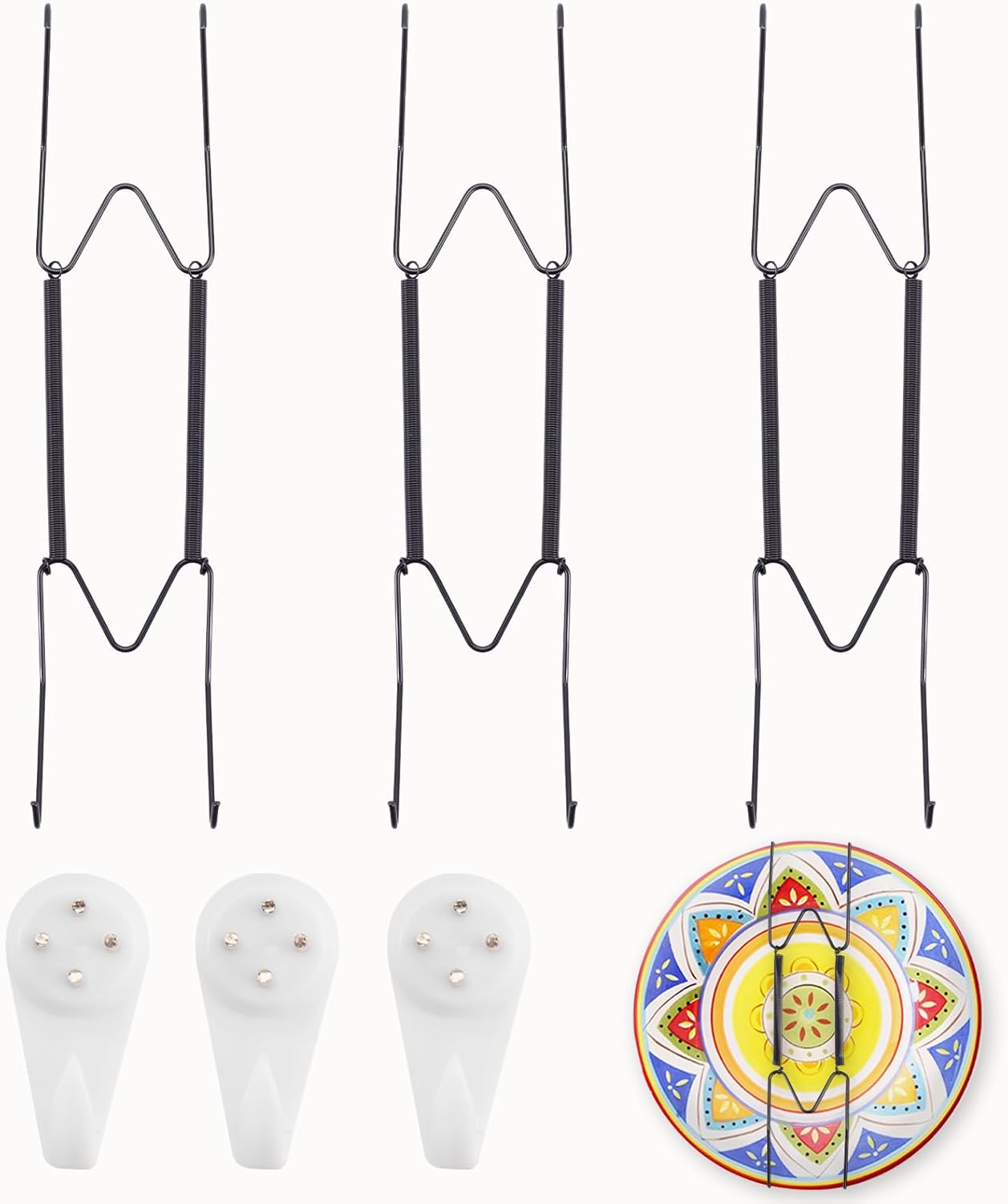 3 Pack Plate Hangers for The Wall Suitable for 9-11 inch Small Decorative Plate, Invisible Stainless Steel Plate Hangers for Display with Wall Hooks, for Plates/Platter/Dish/Picture(Black)
