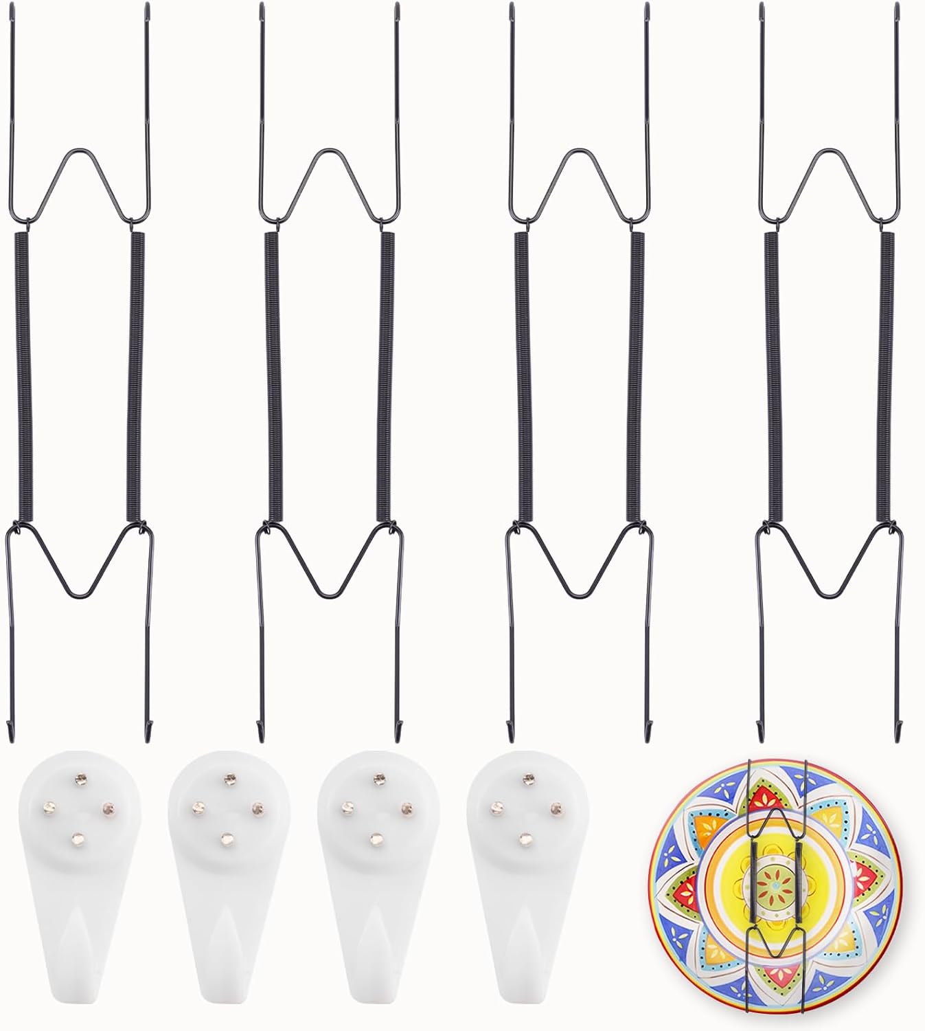 4 Pack Plate Hangers for The Wall Suitable for 10-14 inch Small Decorative Plate, Invisible Stainless Steel Plate Hangers for Display with Wall Hooks, for Plates/Platter/Dish/Picture(Black)