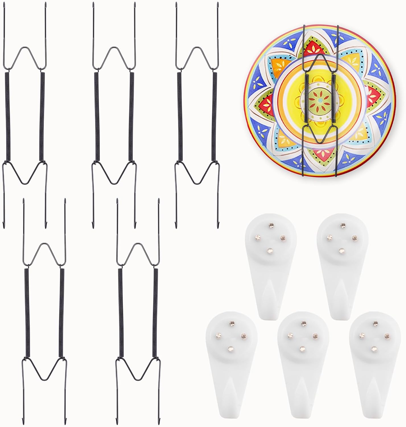 5 Pack Plate Hangers for The Wall Suitable for 10-14 inch Small Decorative Plate, Invisible Stainless Steel Plate Hangers for Display with Wall Hooks, for Plates/Platter/Dish/Picture(Black)
