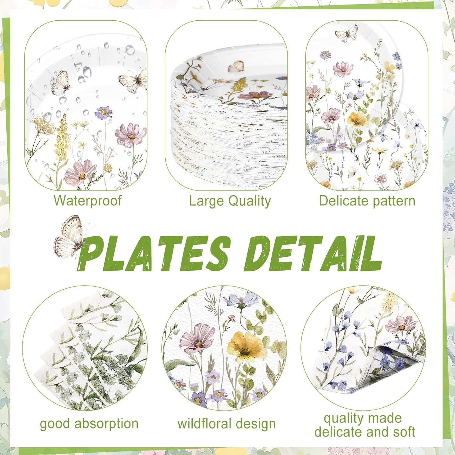 • Exquisite Design: our wildflower theme tableware set features floral patterns, and you will appreciate the elegant design; This party set is a good complement to a floral themed baby shower or wedding party, and can be paired well with certain occasions or table decorations; This design is delicate and beautiful, making people feel relaxed and comfortable