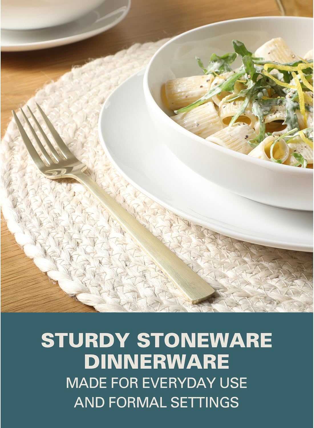 • WEAR-RESISTANT STONEWARE: Sturdy stoneware dinnerware set crafted to serve meals every day for any style, occasion, and budget. Fired at high temperatures to create a non-porous surface, this bowl set ensures strength and durability for long-lasting use.