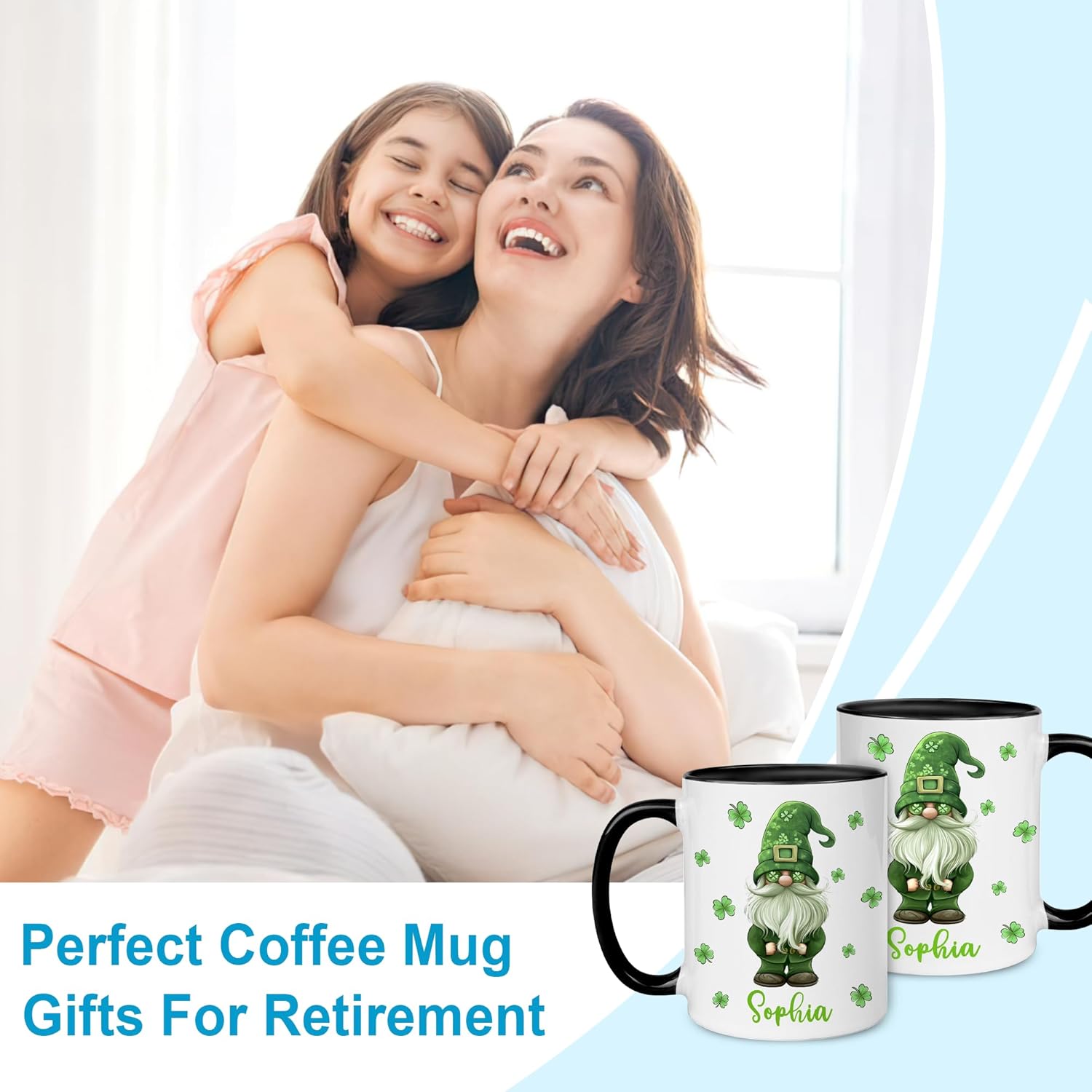 Hyturtle Personalized Gnome Mug - Cute Gnome Gift For Women - Lucky Gift For Gnome Lover - Gnome St. Patricks Day Decorations - Gnome Gifts - Custom Name Coffee Cup Ceramic Mug 11oz 15oz