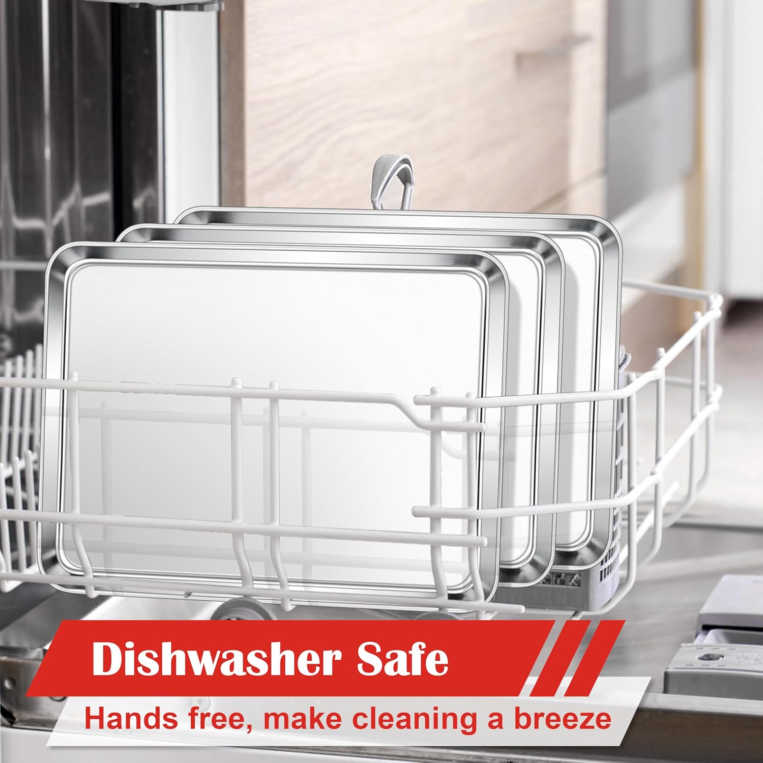 E-far Cookie Sheets Set of 3, 18”x13” Stainless Steel Baking Sheet Pans for Oven, Large Non Toxic Metal Baking Tray for Baking Roasting, Healthy & Rust Free, Mirror Finish & Dishwasher Safe