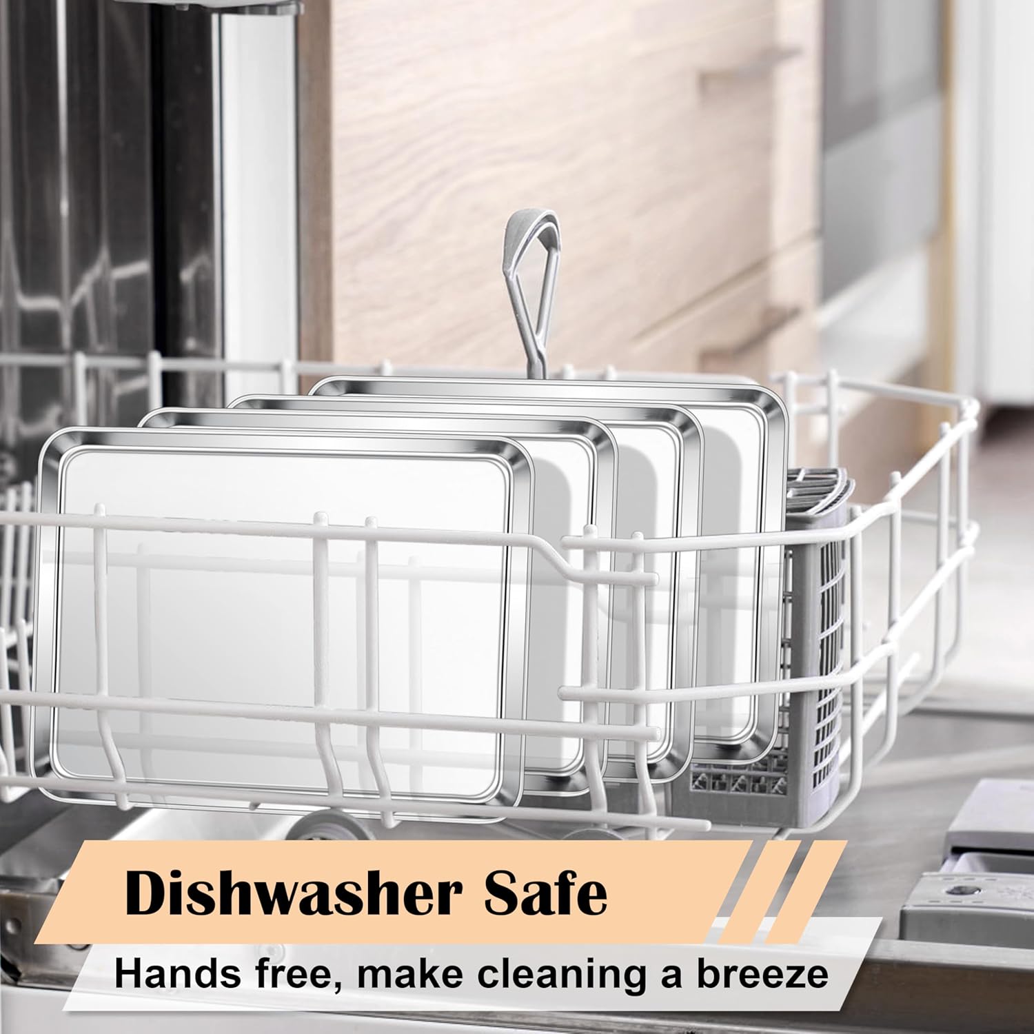 • DURABLE & WARP FREE: One-piece metal structure with a mirror finish enhance hardness, wear resistance and rust protection, Thick rimmed edges prevent warping to ensure durability for long-lasting use, Toaster oven/air fryer/dishwasher/freeze safe