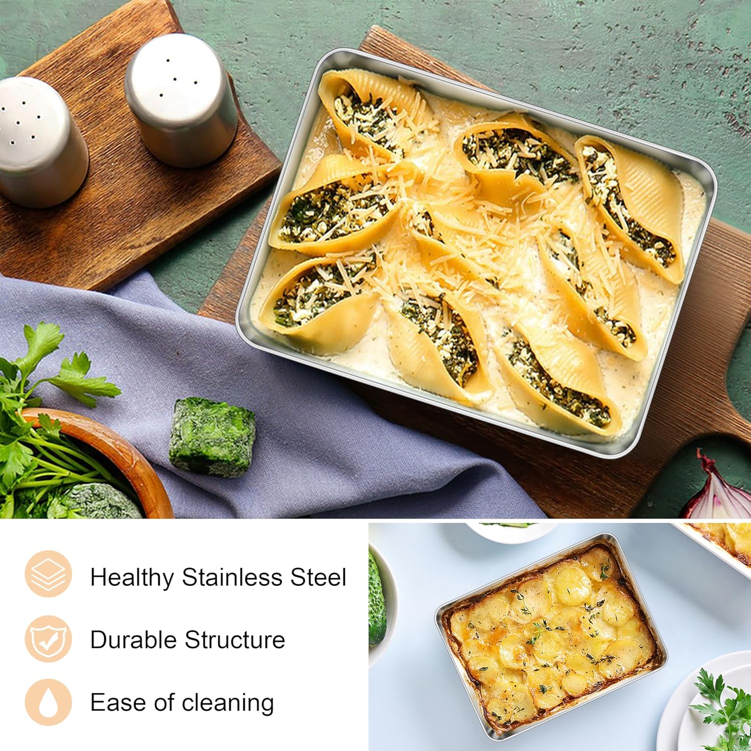 • BAKING EVENLY: Pure stainless steel provides excellent heat conductivity for perfectly browned food, With flat bottom ensures even and uniform baking for good baking performance, Make it ideal for baking/cooking/roasting veggies, bacon or chicken breast