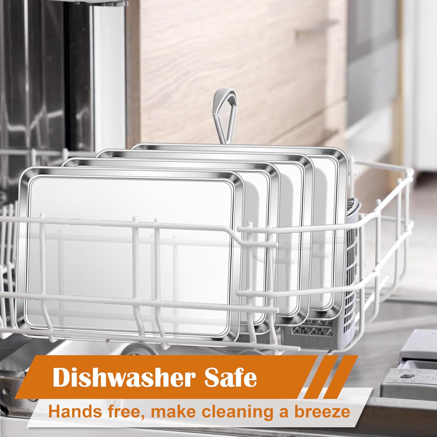 E-far Small Baking Sheet Set of 4, 10.5”x8.3” Stainless Steel Cookie Sheets Pans, Compact Non-toxic Metal Toaster Oven Trays for Cake, Healthy & Rust Free, Mirror Finish & Dishwasher Safe