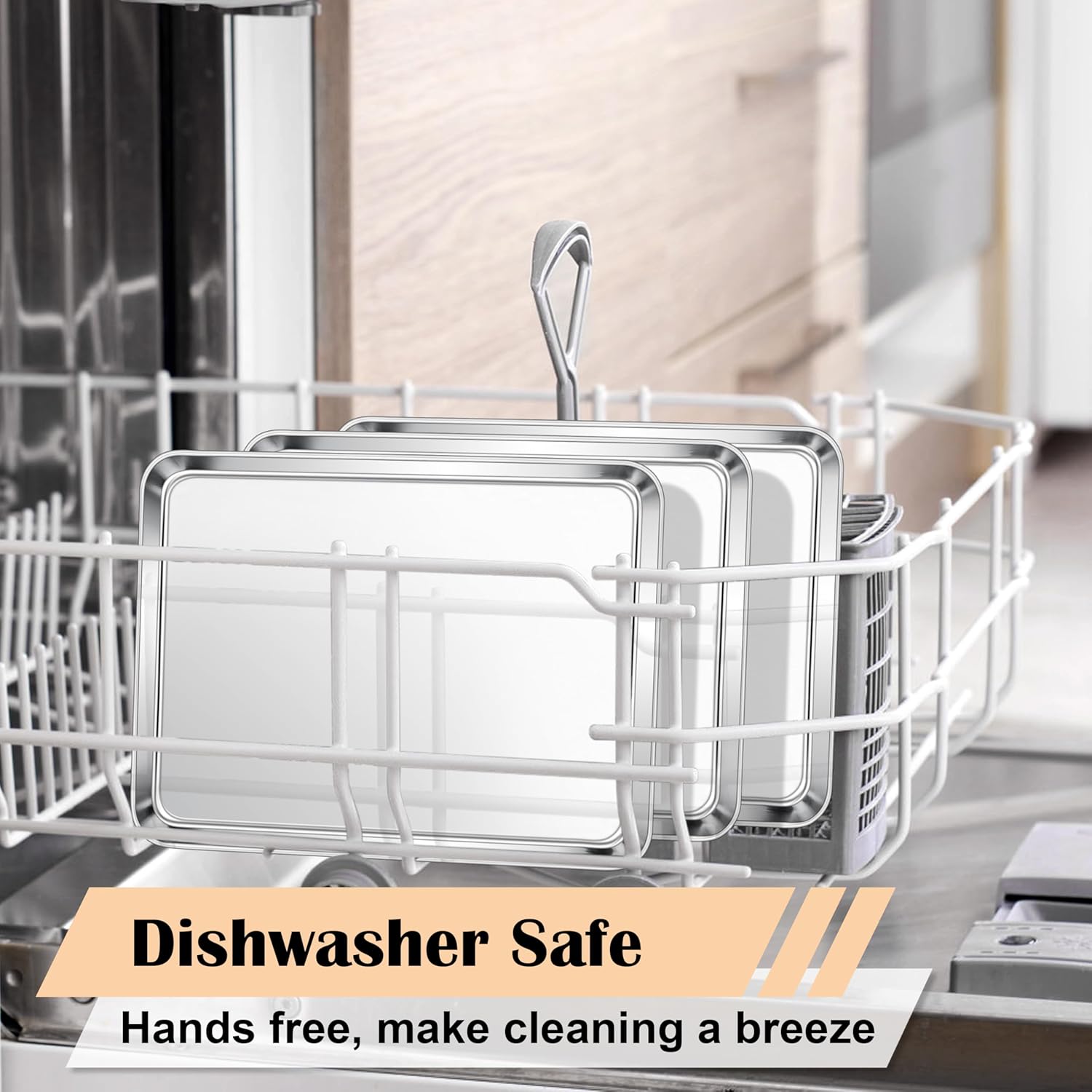 • DURABLE & WARP FREE: One-piece metal structure with a mirror finish enhance hardness, wear resistance and rust protection, Thick rimmed edges prevent warping to ensure durability for long-lasting use, Toaster oven/air fryer/dishwasher/freeze safe