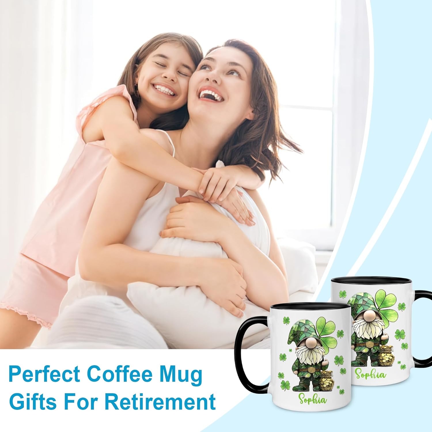 Hyturtle Personalized Gnome Mug - Cute Gnome Gift For Women - Lucky Gift For Gnome Lover - Gnome St. Patricks Day Decorations - Gnome Gifts - Custom Name Coffee Cup Ceramic Mug 11oz 15oz