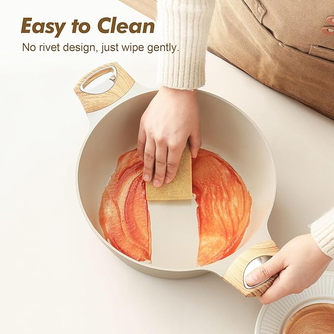 • Natural Nonstick - Ceramic nonstick material is healthier than Teflon and scratch-resistant with excellent food release. Only less oil is needed for cooking, for a healthy, low-fat diet.