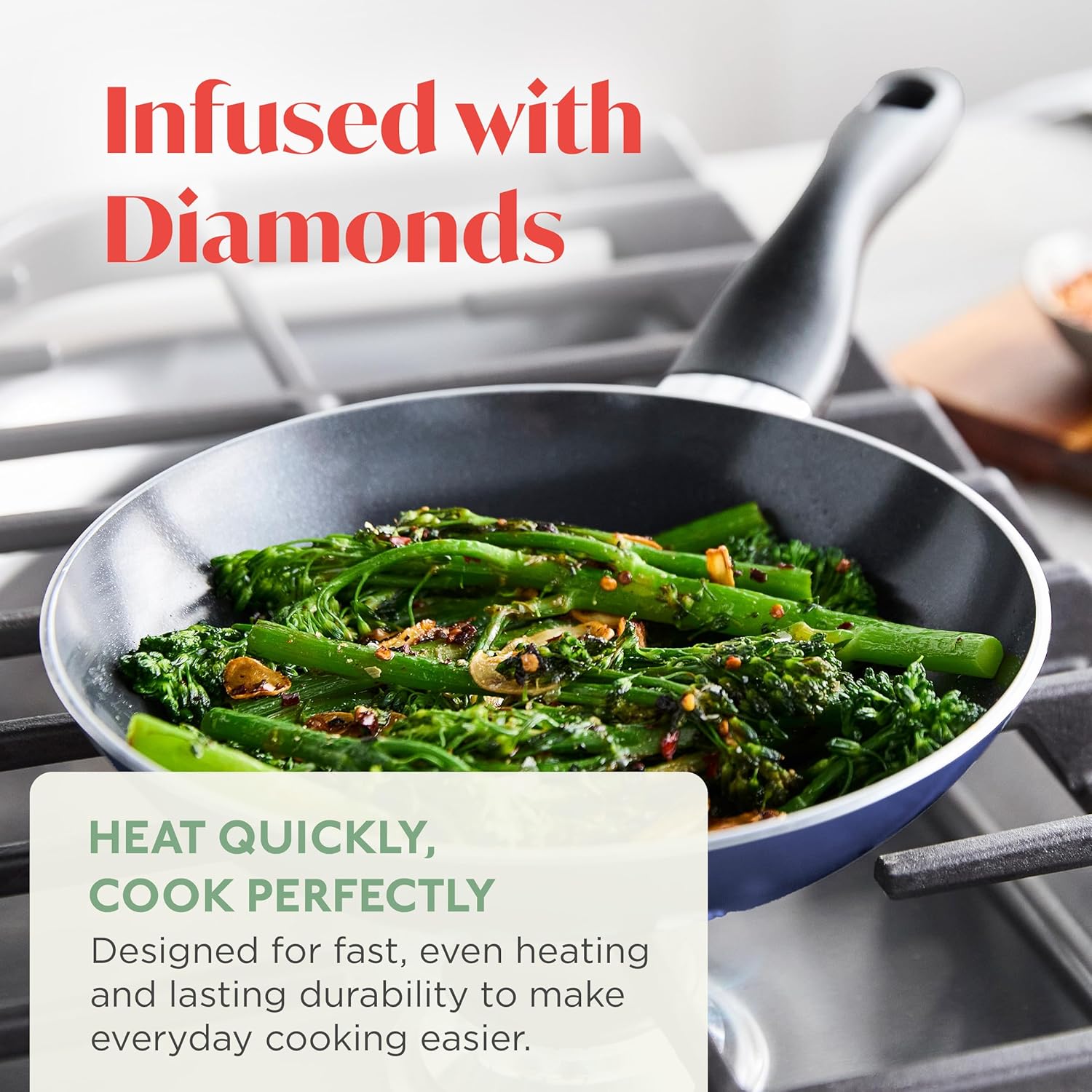 Deco 8” Nonstick Frying Pan Skillet, Made in Italy, Diamond Ceramic PFAS-Free, Dishwasher & Metal Utensil Safe, Durable Gloss Enamel Finish, Stay-Cool Handle, High Walls-Extra Room, Blue
