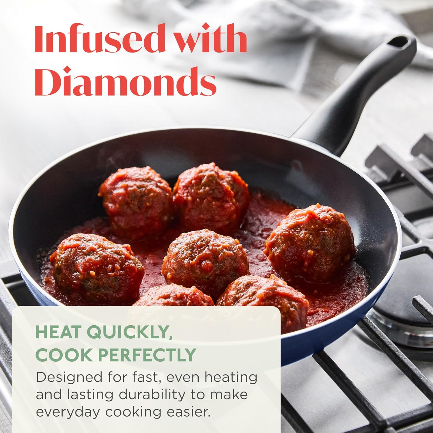 Deco 11” Nonstick Frying Pan Skillet, Made in Italy, Diamond Ceramic PFAS-Free, Dishwasher & Metal Utensil Safe, Durable Gloss Enamel Finish, Stay-Cool Handle, High Walls-Extra Room, Blue