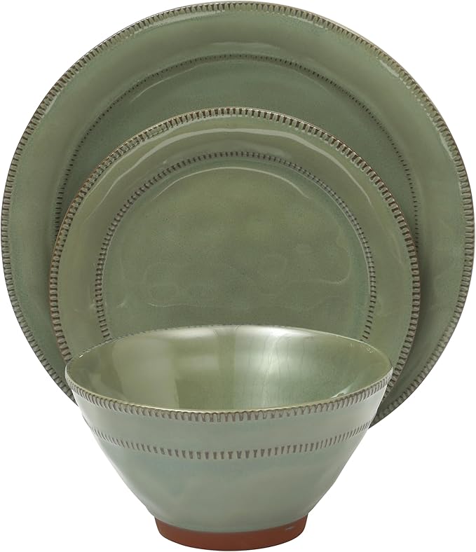 Gibson Elite Terranea 12 Piece Dishes Reactive Glaze Plates and Bowls Terracotta Dinnerware Set - Service for 4 - Green