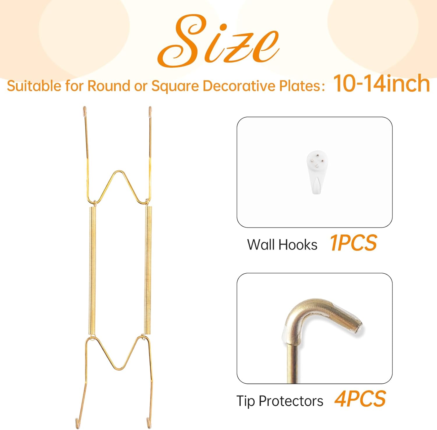 • Premium Material: Our wall plate hangers are made of stainless steel with golden plated on the surface, not easy to break or rust. The rubber tip protector protects your plate from scratches. The adjustable spring design holds the plate tightly