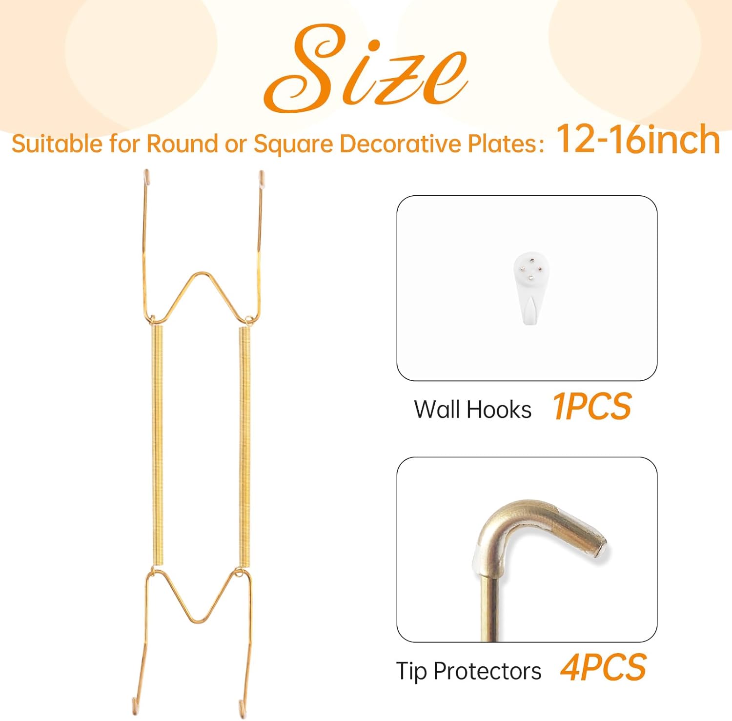 • Premium Material: Our wall plate hangers are made of stainless steel with golden plated on the surface, not easy to break or rust. The rubber tip protector protects your plate from scratches. The adjustable spring design holds the plate tightly