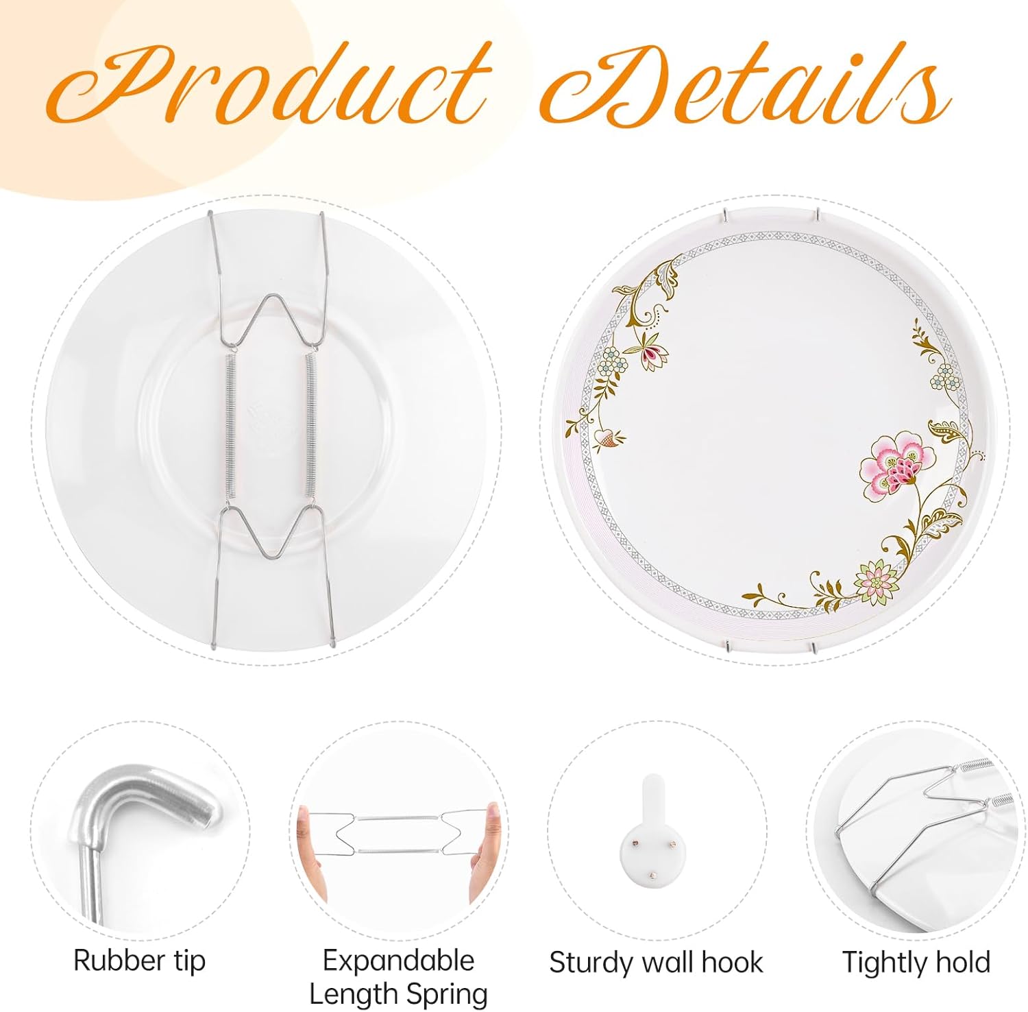 • Premium Material: Our wall plate hangers are made of stainless steel with golden plated on the surface, not easy to break or rust. The rubber tip protector protects your plate from scratches. The adjustable spring design holds the plate tightly