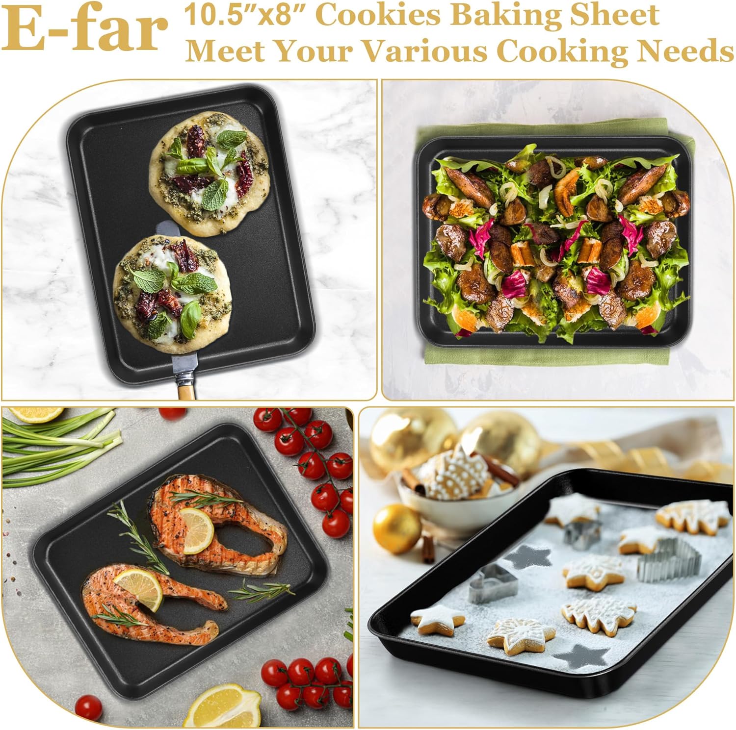 E-far Toaster Oven Tray, 10.5x8x1 Inch Nonstick Baking Cookies Sheet Pan for Oven, Small Metal Carbon Steel Baking Pan for Bacon Steak, Nontoxic & Easy Clean, Heat & Warp Resistant