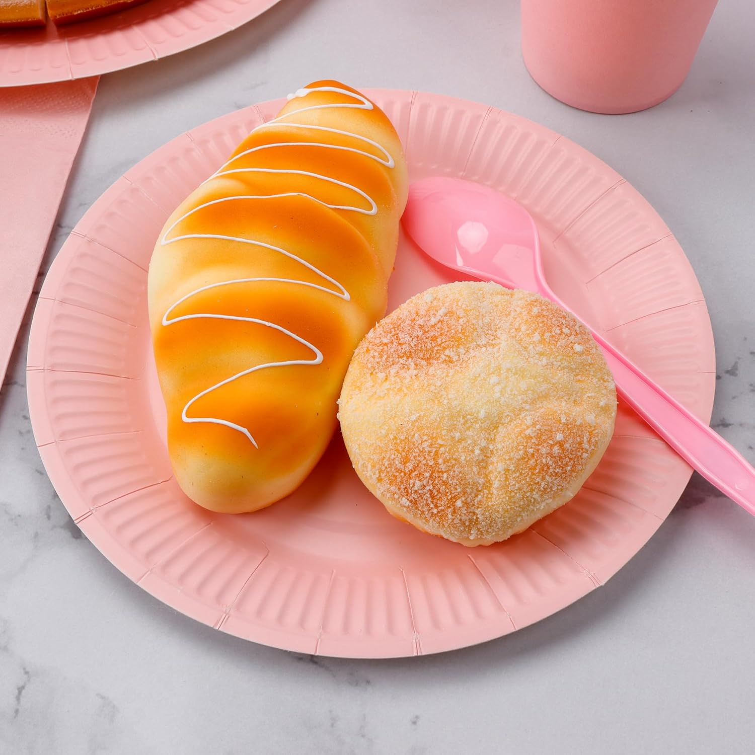 210pcs Pink Paper Plates Disposable Tableware Party Supplies - Includes 9" Dinner Plates, 7" Dessert Plates, 9oz Paper Cups, Napkins, Plastic Forks, Knives And Spoons For All Holiday Parties Serves 30