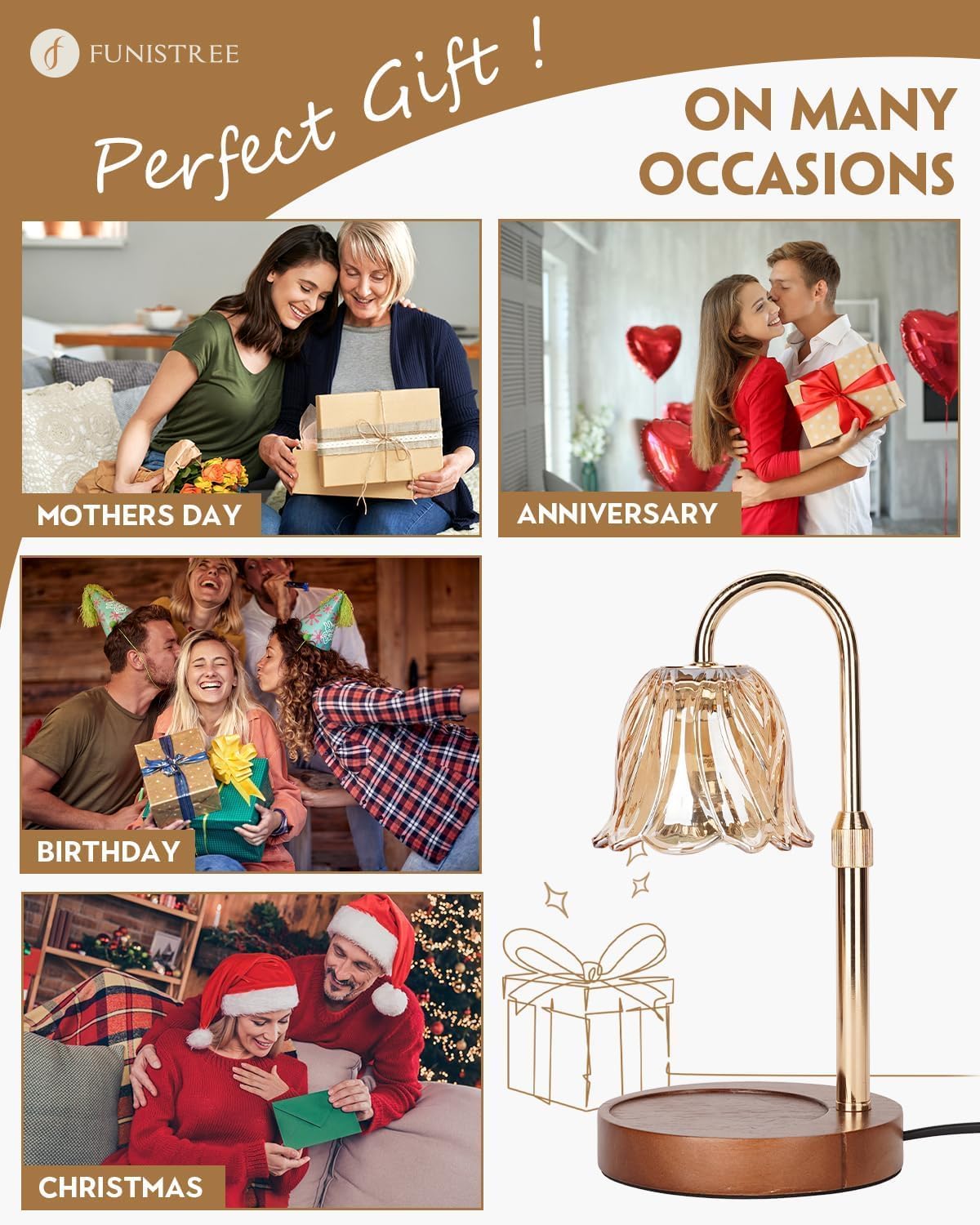 Candle Warmer Lamp, Gold Candle Lamp Warmer with Timer & Dimmer with 2 Bulbs, Birthday Gifts for Women Mom, Christmas Gifts, House Warming Gift New Home Bedroom Decor, Height Adjustable