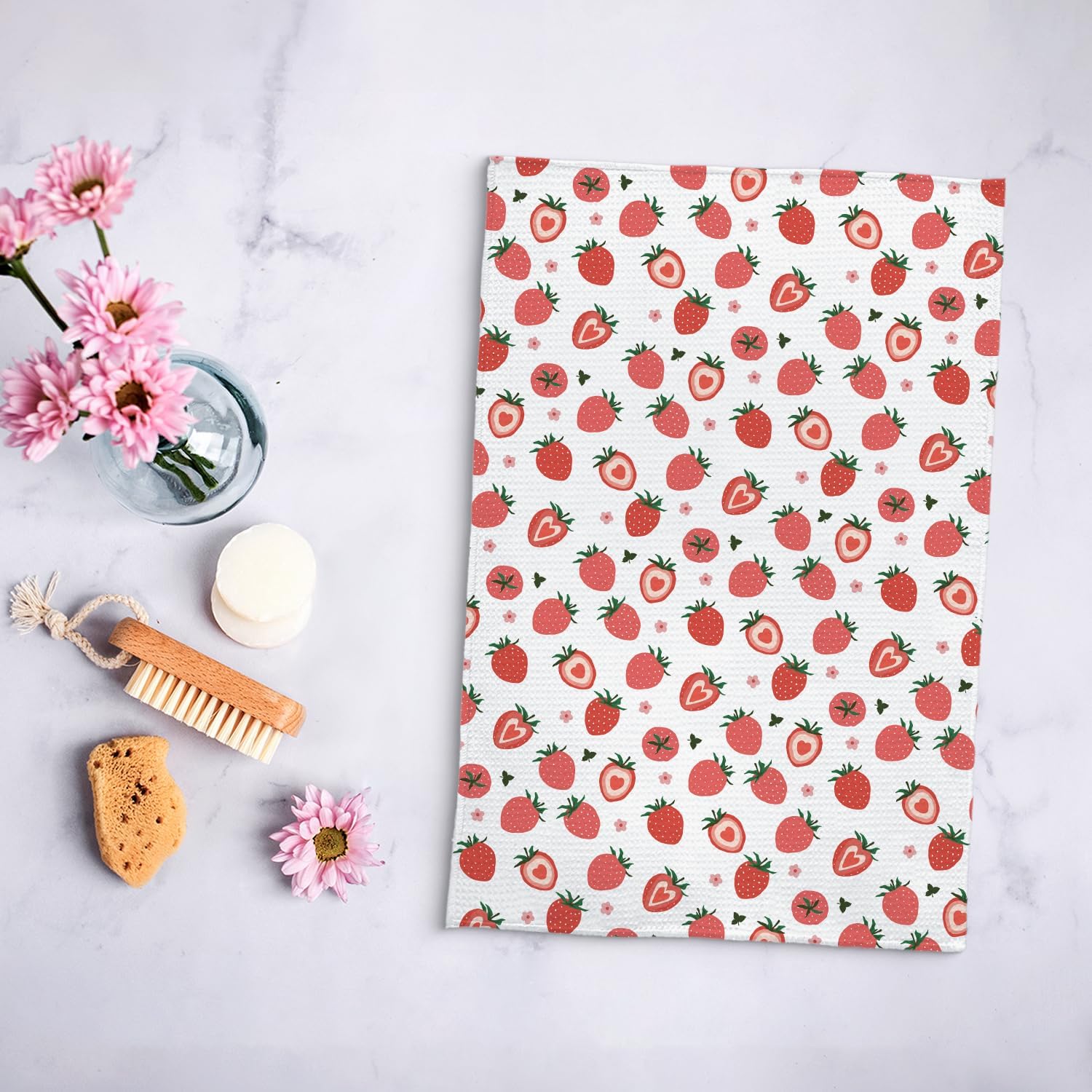 Strawberry Decor Kitchen Towel, Strawberry Hand Towel Dish Towel for Kitchen Bathroom Decor, Fruit Lover Gifts, 16x24 Inches