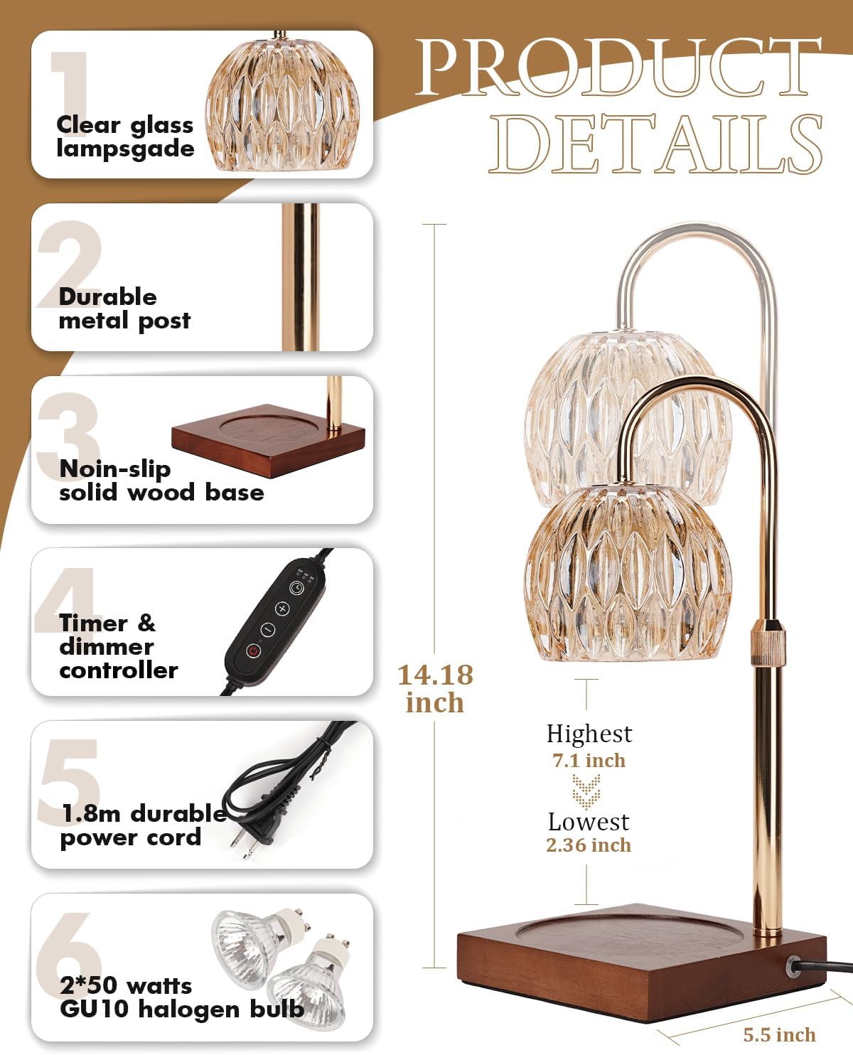 Candle Warmer Lamp, Wax Melter Warmer with Adjustable Height & Timer, Birthday Gifts for Women Mom, Christmas Gifts, House Warming New Home Office Decor for Jar Candles