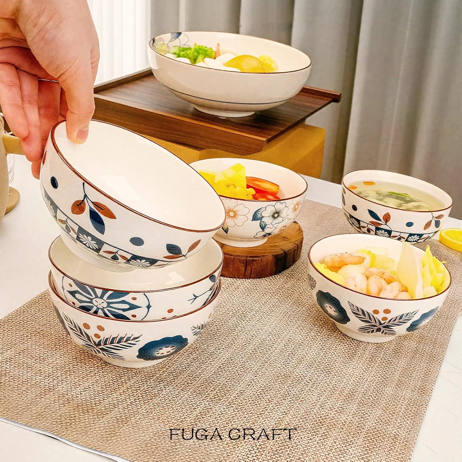 • Charming Floral Design:This premium porcelain bowl features a delicate floral pattern, perfect for serving small dishes, snacks, desserts, or soups, adding elegance to your dining table