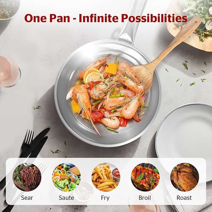 • MULTI-PURPOSE VERSATILITY: Whether you're searing steaks, frying eggs, or preparing delicate sauces, this versatile pan is the perfect tool for a wide range of culinary tasks.