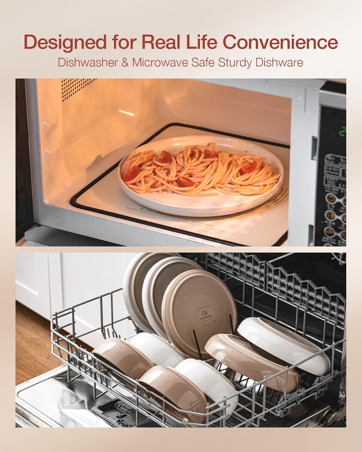 • 【DISHWASHER AND MICROWAVE SAFE】Our dishes have passed microwave and dishwasher safe testing at internationally accredited laboratories. Each plate and bowl is dishwasher safe and microwave safe.