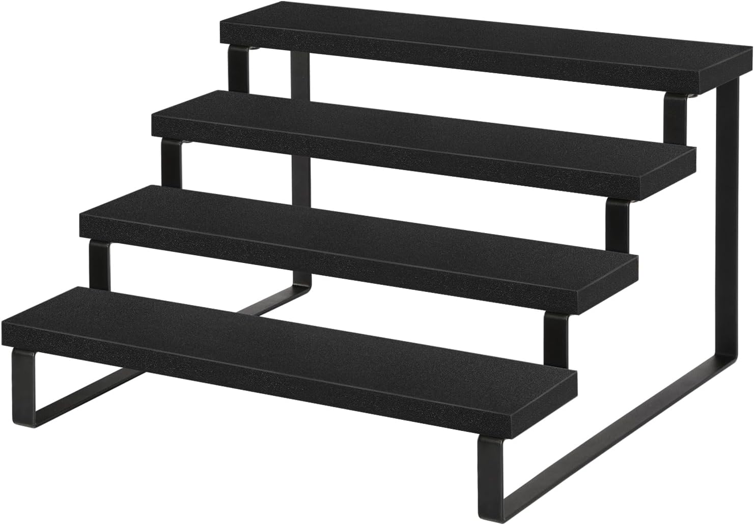 • Quick Setup & Easy Cleaning: You can have this 4-tier display riser stand assembled in 10 minutes with detailed instructions and tools. The wooden surface is waterproof and dust-free, a damp cloth could keep the counter shelf clean. (Assembly tools and accessories are included in the package)