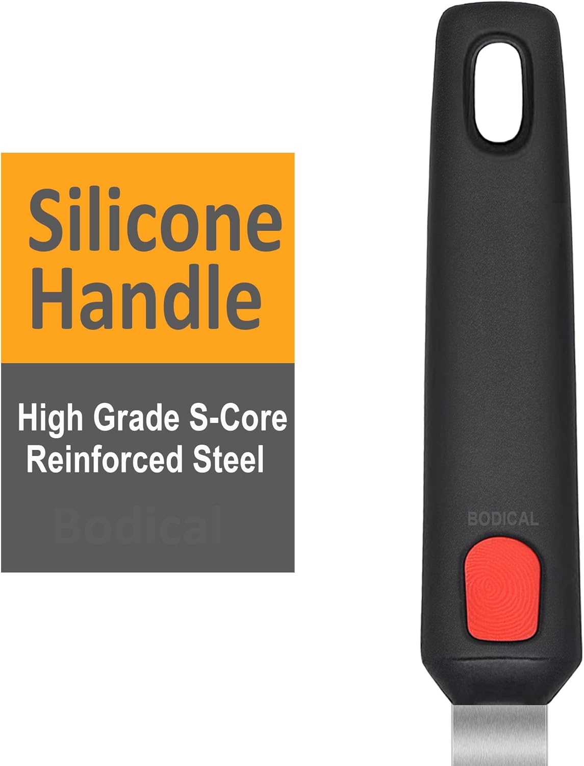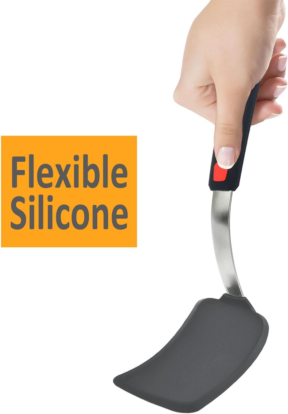 • STRENGTH AND FLEXIBLE - Silicone cooking spatula features a stainless steel core that offers the perfect balance of strength and flexibility, ensuring that your non-stick cookware remains scratch-free. Kitchen spatula is creatively shaped, comfortable to hold, and built for a multitude of heavy-duty uses in your kitchen. Built-to-last strength and flexibility.