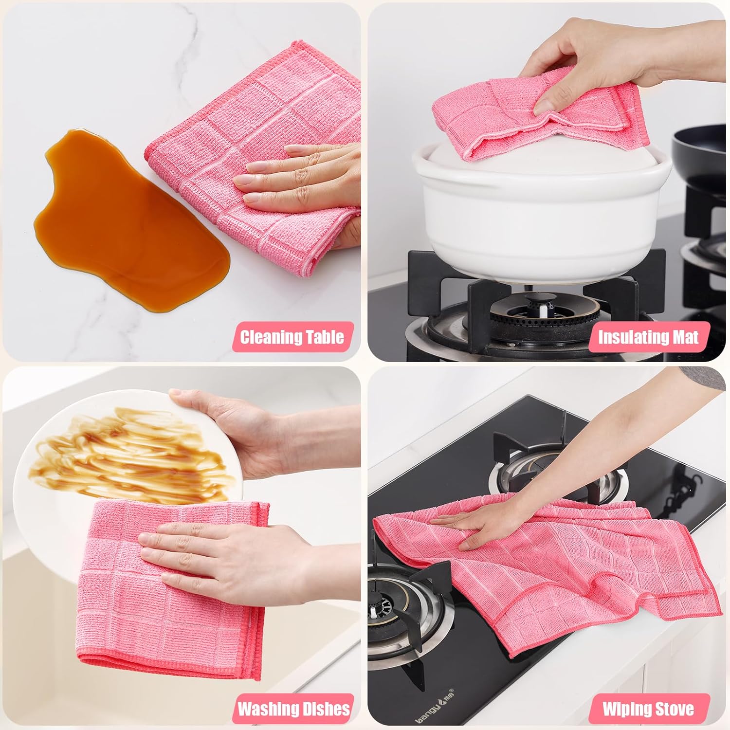 Homaxy Microfiber Kitchen Towels and Dishcloths Set, 16 Pack Soft and Absorbent Dish Hand Towels Bulk, 28 x 16 Inch & 12 x 12 Inch Quick Drying Rags for Washing Dishes, Pink