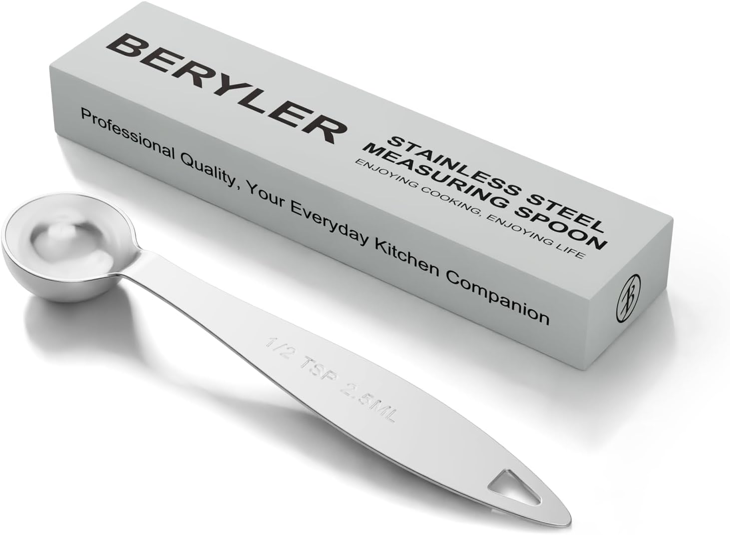 • Precise Scales: The BERYLER measuring spoon is so precise that it can be the perfect partner for your cooking. The teaspoon has a clear scale on the handle in US and metric. ⬤1/2 TSP | 2.5ML