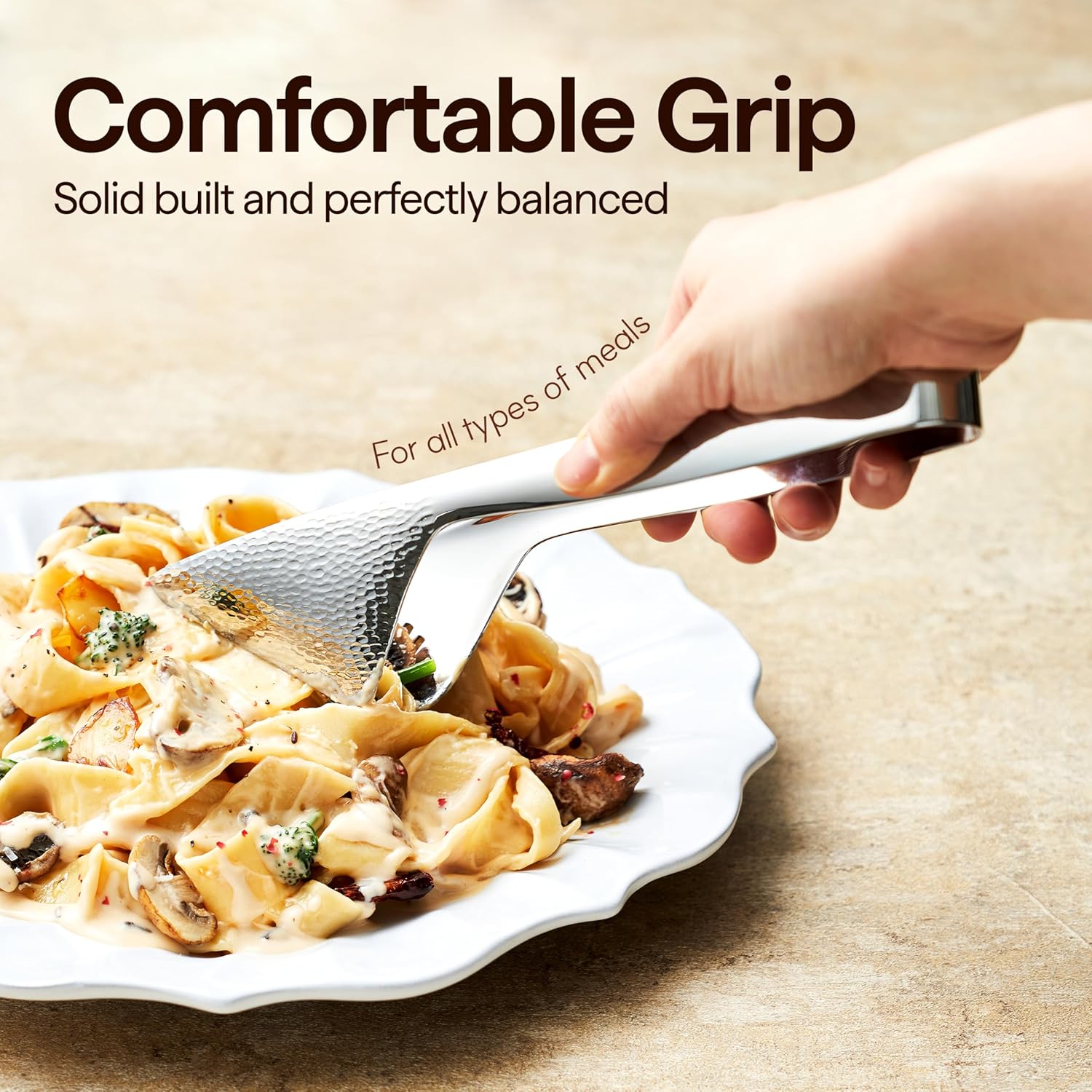 Luciella Ponza Flatware Set for 8, 45-Piece Stainless Steel Silverware Set with Serving Utensils, Timeless Hammered Design, Rust-Resistant, Mirror Polished & Dishwasher Safe
