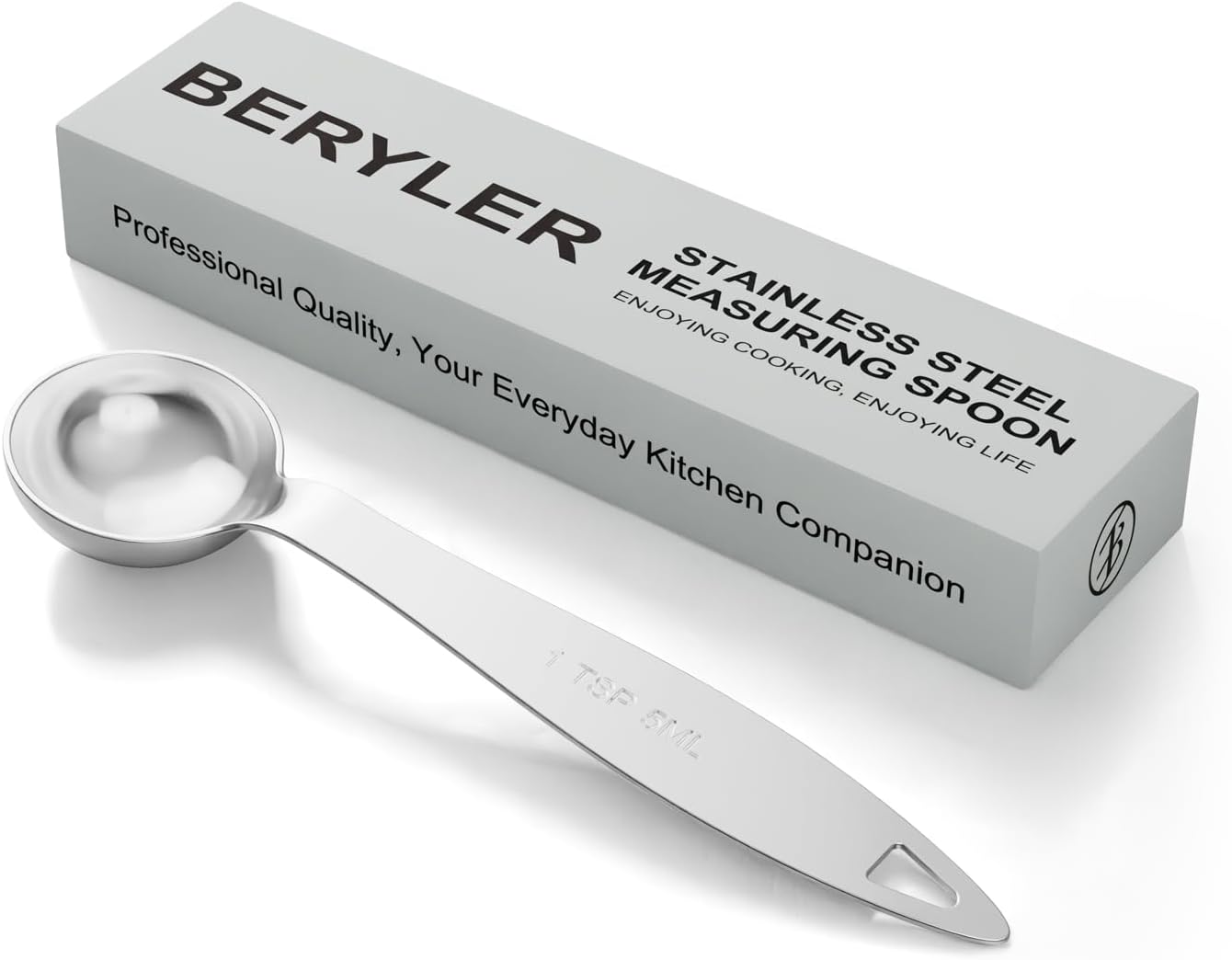 • Precise Scales: The BERYLER measuring spoon is so precise that it can be the perfect partner for your cooking. The teaspoon has a clear scale on the handle in US and metric. ⬤1 TSP | 5ML