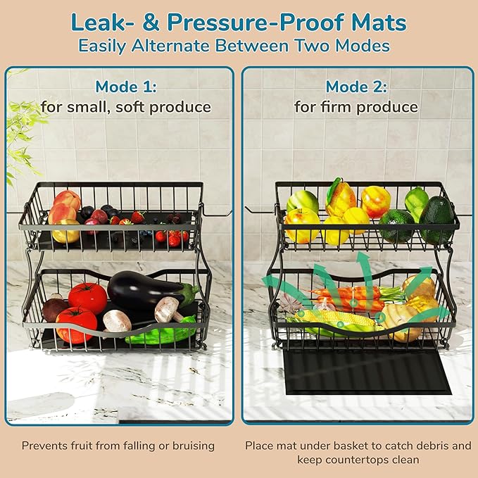 • Removable Mats: Easily alternate between the leak-proof mats or open ventilation, perfect for fruit and vegetable organizer