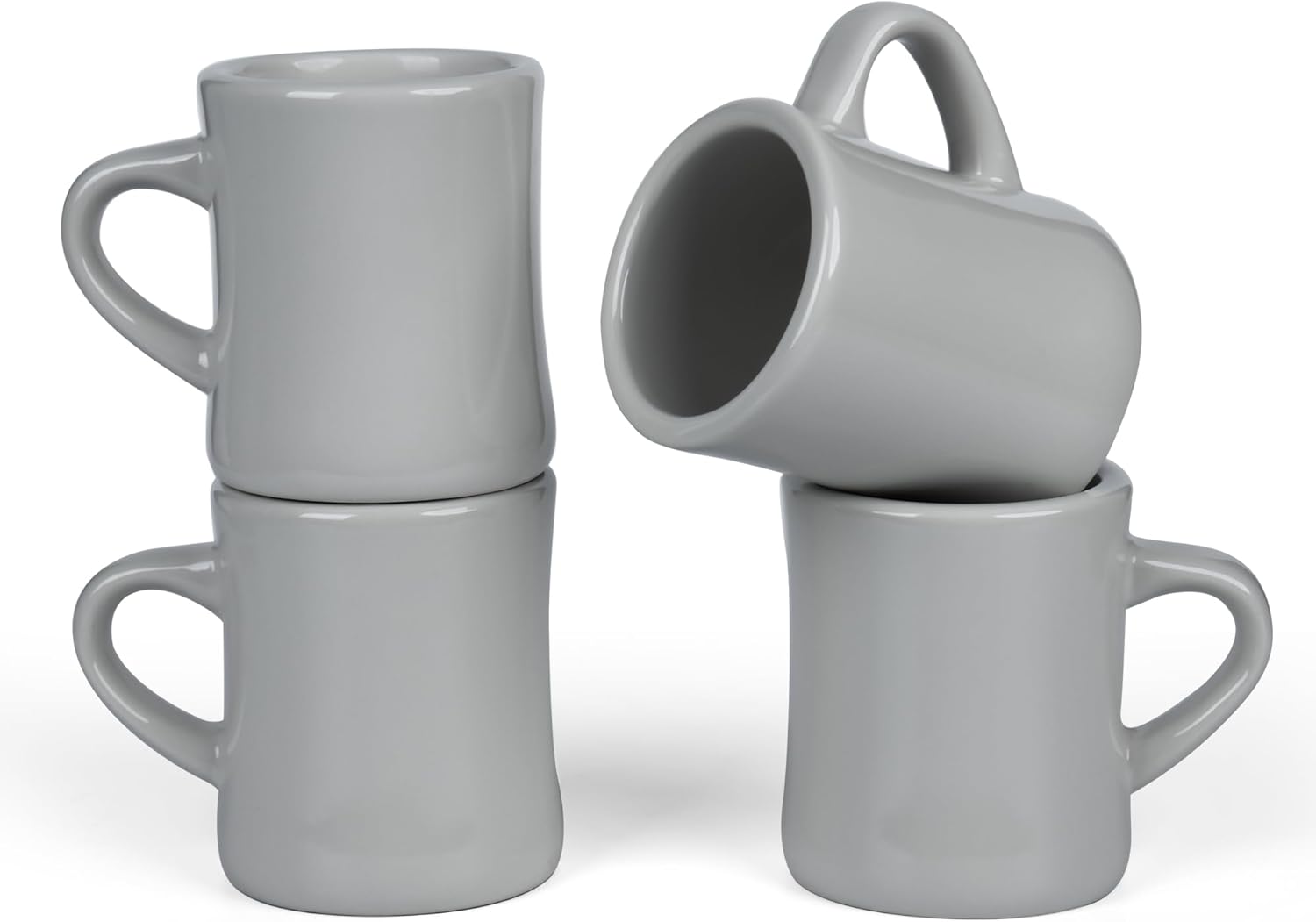 11oz White Diner Coffee Mug Set of 4 Ceramic Mugs Great for Kitchen Set, Travel, and Hot Tea (Grey)