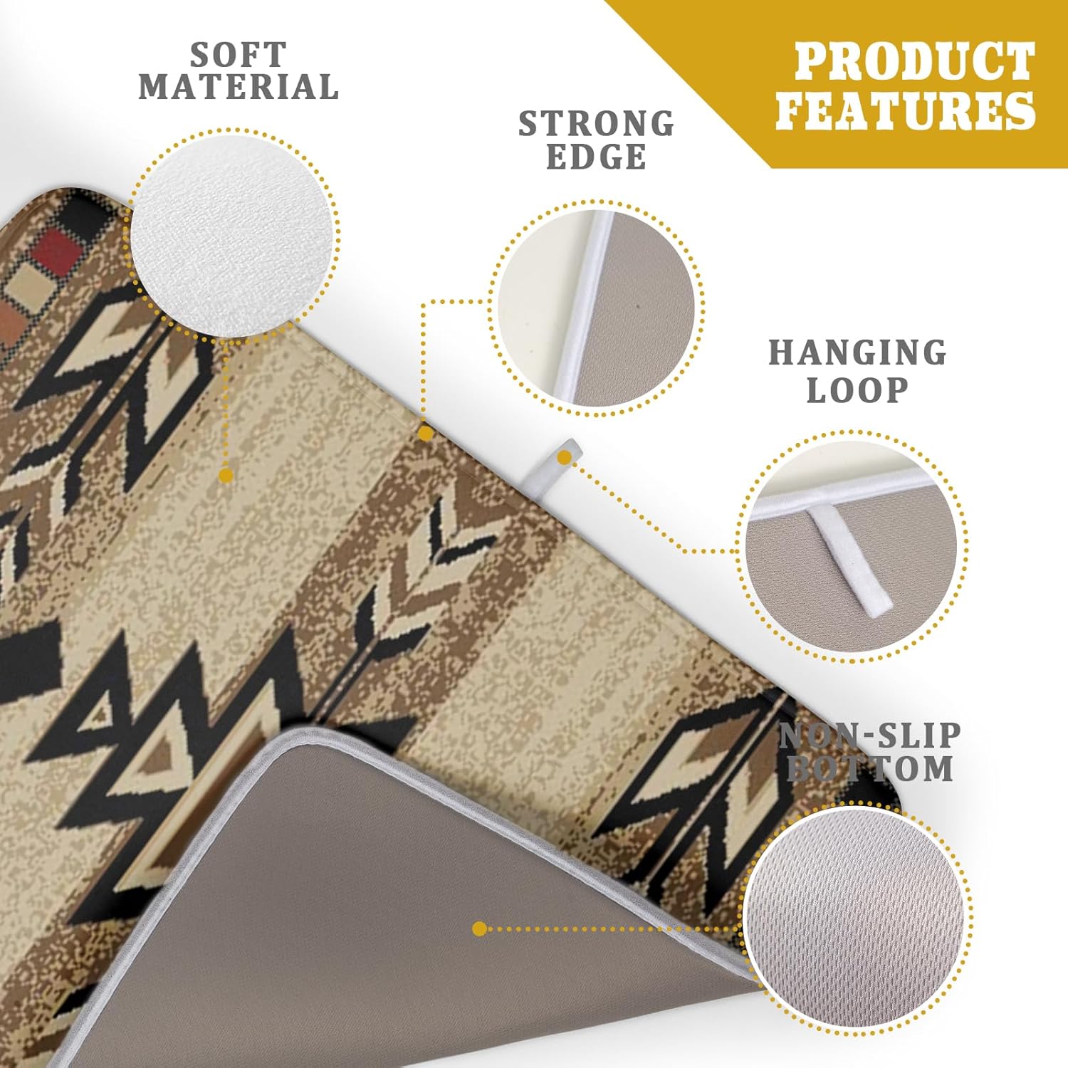 Giwawa 18"x24" Southwestern Dish Drying Mat Rustic Brown Tribal Ethnic Large Dish Drainer Mats Antique Native American Absorbent Microfiber Dish Drying Pad for Kitchen Countertop Decor
