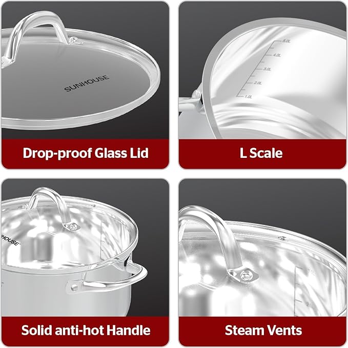 • [HIGH-QUALITY STAINLESS STEEL] - Made from premium stainless steel that resists corrosion, rust, and food reactions. No warping, cracking, or chipping. Free from toxic materials, ensuring safe and healthy cooking. Durable and built for all your simmering, boiling, and cooking needs. Easy to clean and dishwasher-safe.