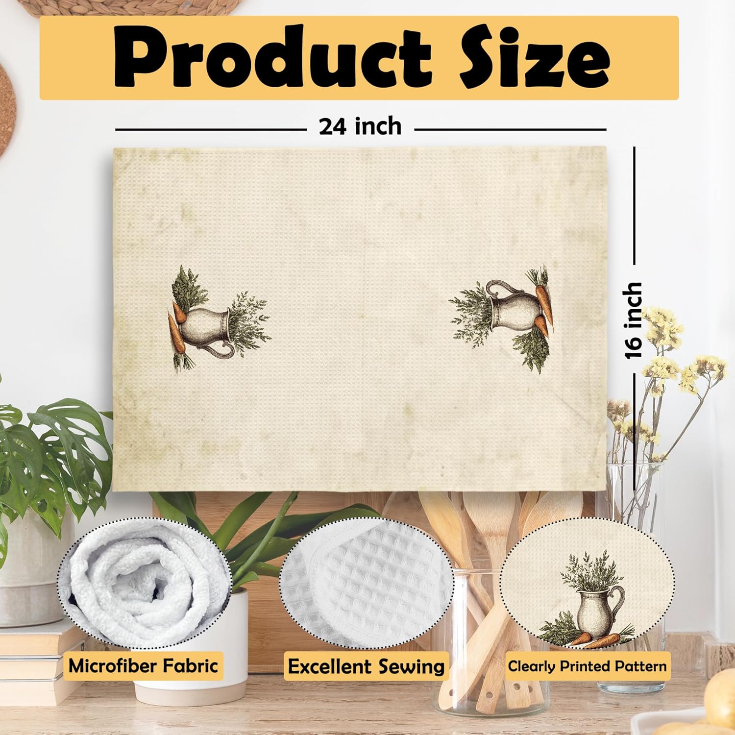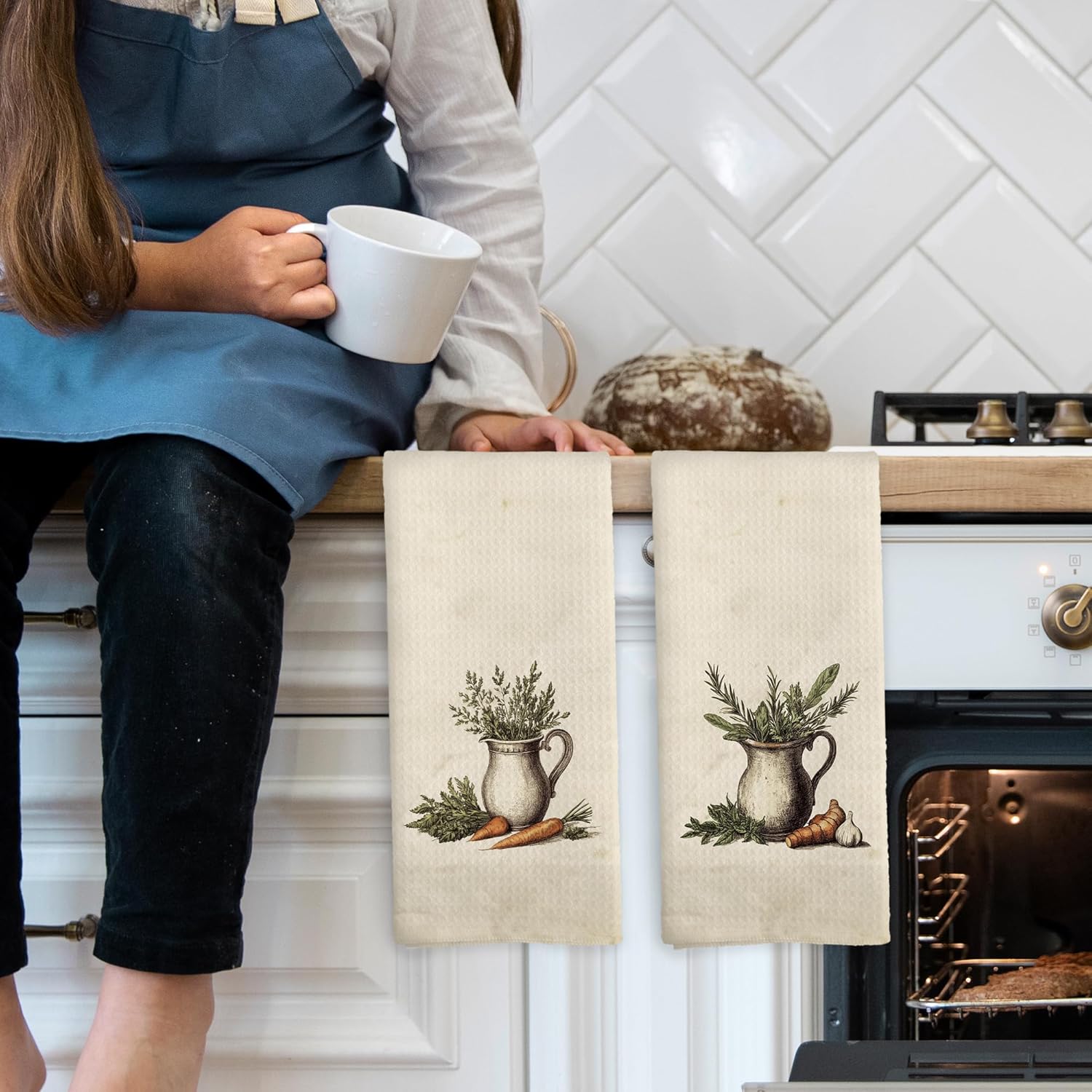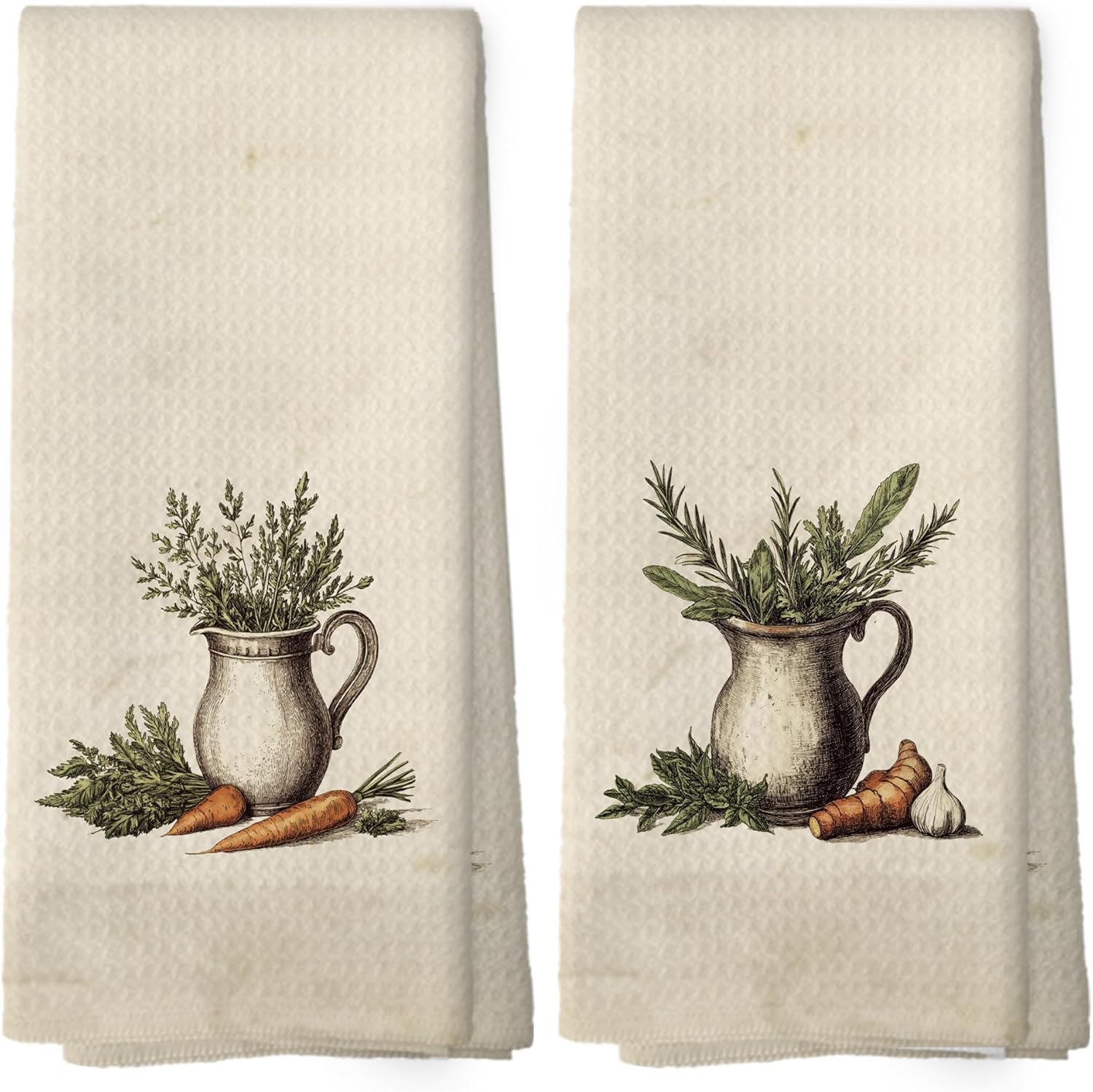 Vintage Country Kitchen Herbs Kitchen Towels Set of 2,Farmhouse Kitchen Decor Hand Towel, Carrot Ginger Garlic Still Life Food Decorative Tea Towel Dish Towels 16x24 Inch