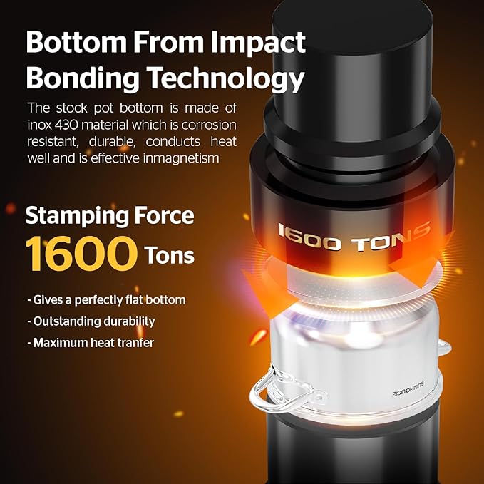 • [Tri-Ply Stainless Steel for Fast Heating] – The 3-ply bonded construction, which alternates layers of stainless steel and aluminum, ensures even heat distribution, preventing hot spots and promoting faster cooking. This design helps save both time and energy.