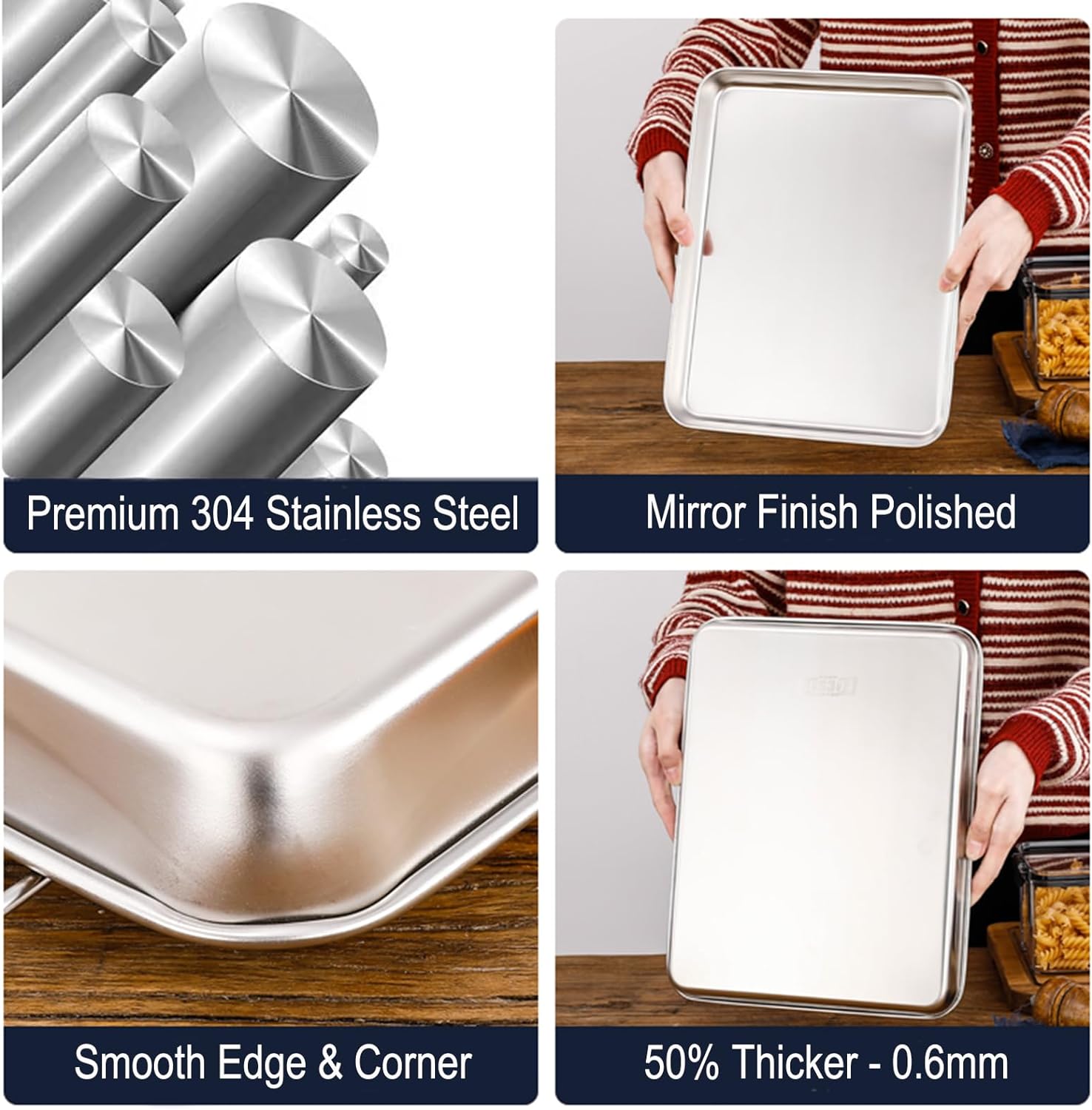 Small Cookie Baking Sheet Pans Stainless Steel 304 Little Tiny Serving Tray 10.4 x8.1 x1.1Inch (Diagonal 12.3) Reheat Food Small Items No Rust Dishwasher Safe for 2 Person 6 Pack
