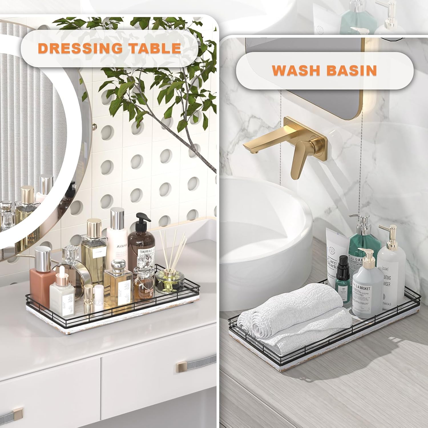 • Considerate Design: This bathroom trays for counter is ready to use without any installation required; Upgraded embedded welding design enhances stability and aesthetics; Raised edge prevent items from slipping; 4 non-slip pads on the bottom protect surfaces from scratches; Simplify your cleaning routine with just a quick wipe-down using a damp cloth, saving you time and hassle