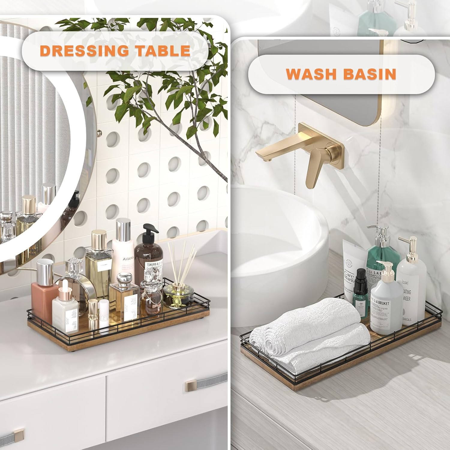 • Considerate Design: This bathroom trays for counter is ready to use without any installation required; Upgraded embedded welding design enhances stability and aesthetics; Raised edge prevent items from slipping; 4 non-slip pads on the bottom protect surfaces from scratches; Simplify your cleaning routine with just a quick wipe-down using a damp cloth, saving you time and hassle