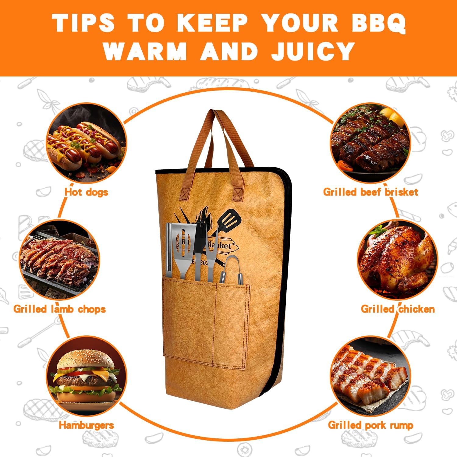 BBQ Blanket,21inch Insulated Meat Resting Bag for Brisket,Pork Shoulders,Steaks & Turkeys|Heavy-Duty Smoker Blanket with Wide Mouth Design for Moisture Retention and Tender BBQ|Ideal Gift for Men
