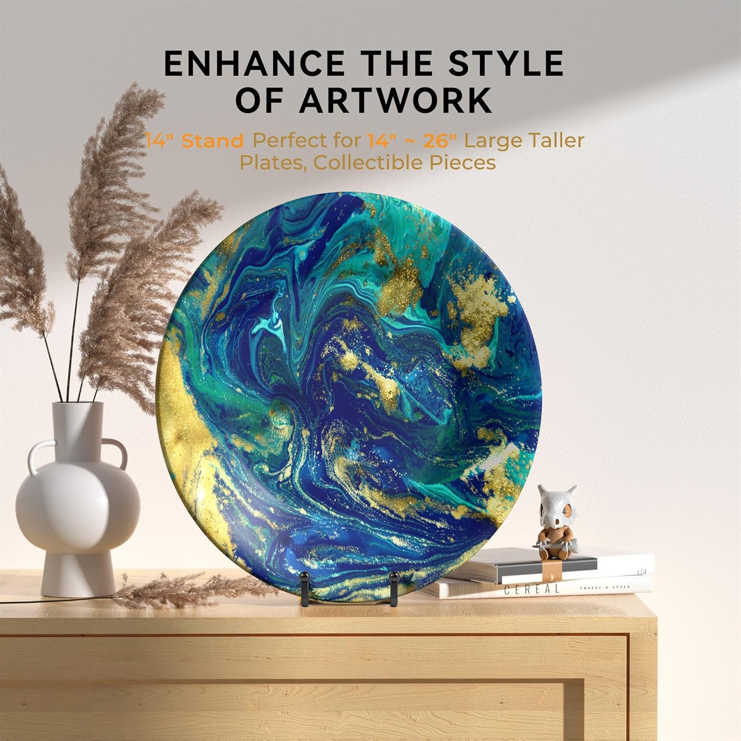 • Heavy Duty Plate Stand: Designed with a 2.75" deep lip and 10° tilt angle, this 14 inch large plate stand securely holds plates, frames, and other display items ranging from 14" to 34" in size; supports up to 20 lbs for stable display of heavier Décor.