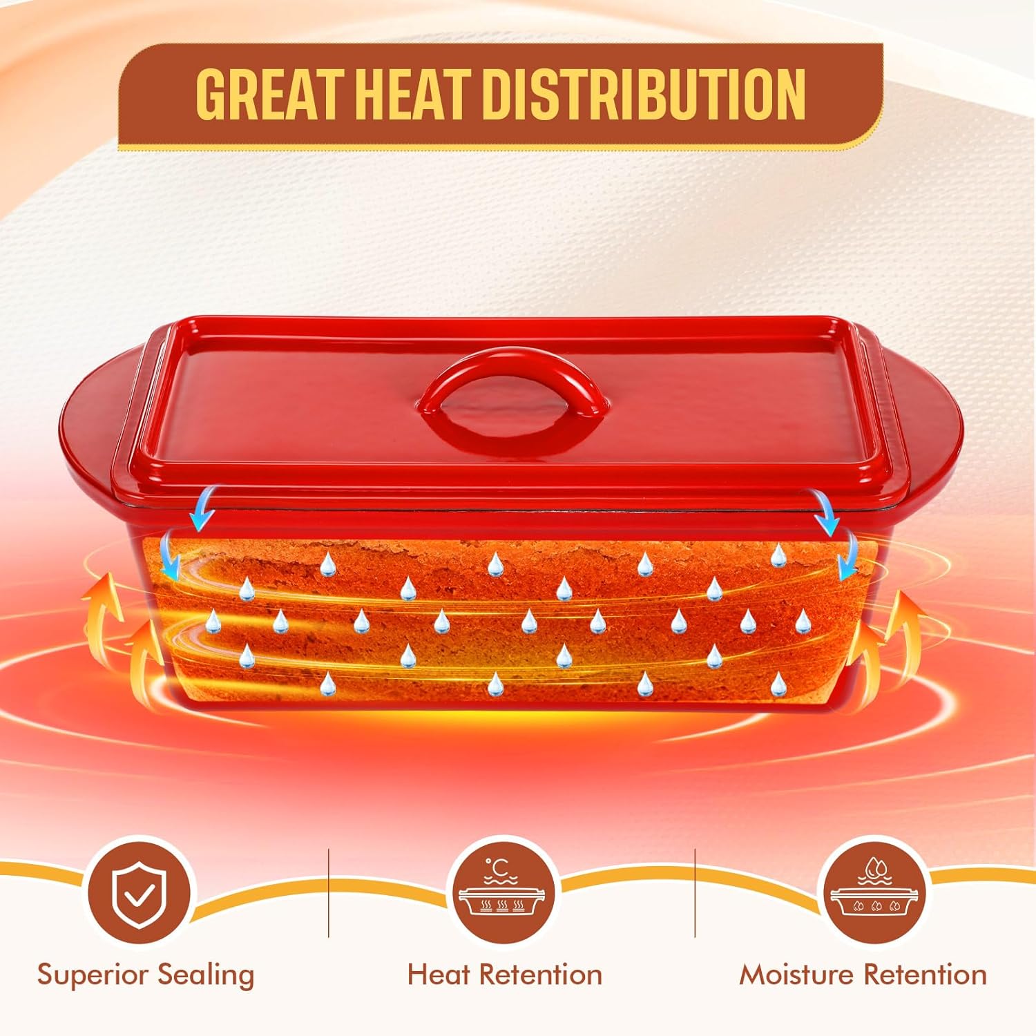 • Elegant and Stylish: featuring a bright red enamel finish, this Dutch oven-style bread pan adds a touch of elegance to your kitchen; The classic design not only enhances your cooking experience but also complements your kitchen or dining room decoration