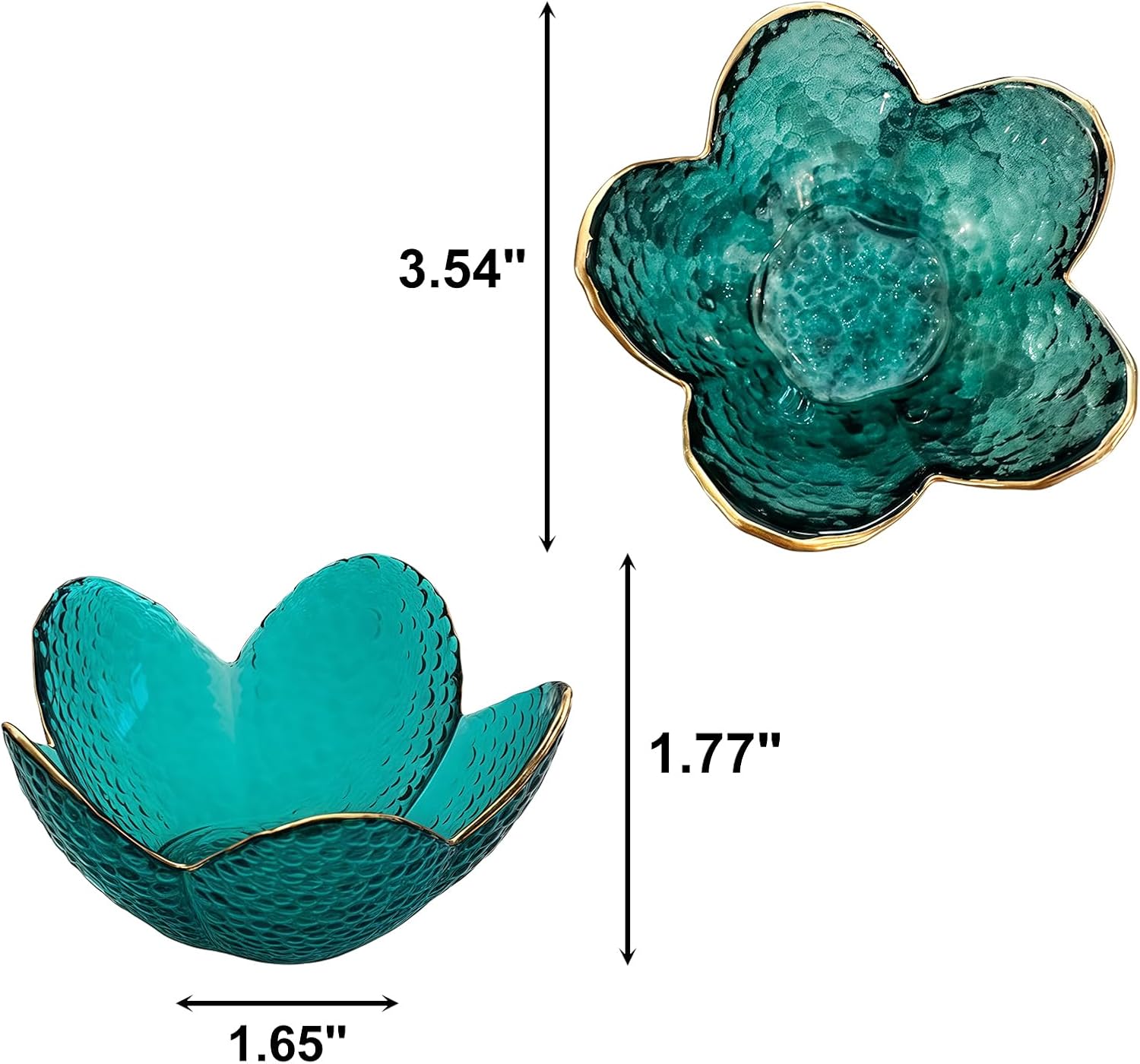 Small Green Flower Jewelry Dish, Glass Jewelry Ring Tray Trinket Bowl, Nightstand Decor Ring Holder for Women, Home Decor Gifts for Women, Wedding, Birthday, Mothers Day, Christmas, Thanksgiving