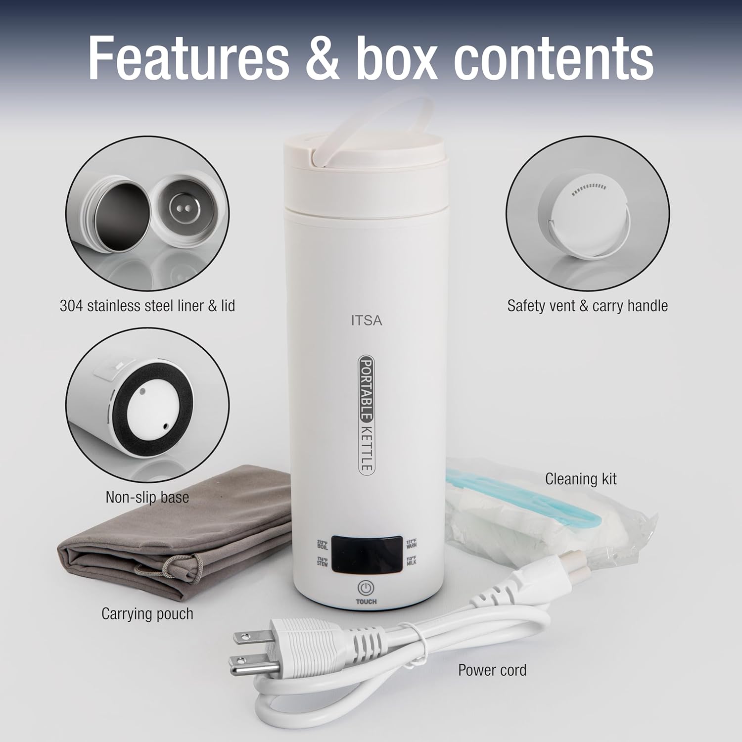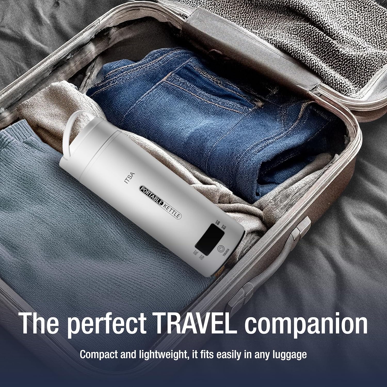 ITSA Travel Electric Kettle 500ml Portable Stainless Steel Water Boiler with Temperature Control & Auto Shut Off – Mini Electric Kettle for Coffee, Tea & Hot Water, BPA-Free