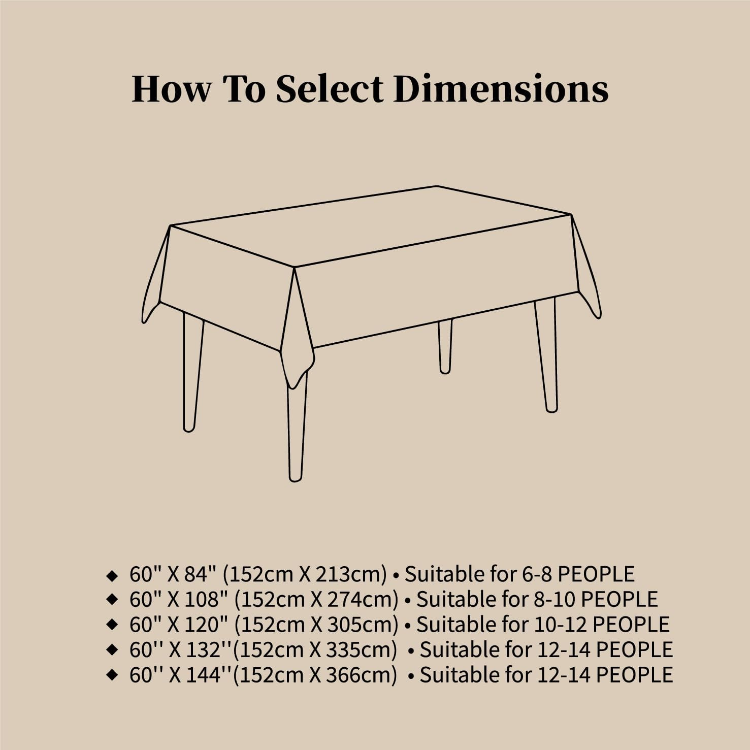 • 【VALUE PACK】You will get 60''W x 84''L table clothes for rectangle tables, enough for 6-8 seat rectangle or oval table needs by better dropping effect. Please measure your table size and according to the size guiding chart before purchasing